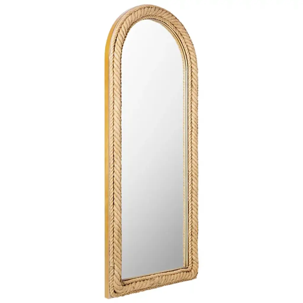 The Magdalen Full Length Mirror from Surya makes a grand statement with its imposing stature and distinctive jute-wrapped frame. This oversized piece commands attention in bedrooms, dressing areas, or entryways with its artisanal craftsmanship and organic aesthetic. The intricate braided jute border introduces rich texture and visual depth, elevating the mirror beyond mere functionality. Its arched crown lends a softening effect to the dramatic scale. Ideal for cottage and farmhouse-inspired interiors, this mirror infuses spaces with rustic refinement and natural beauty.