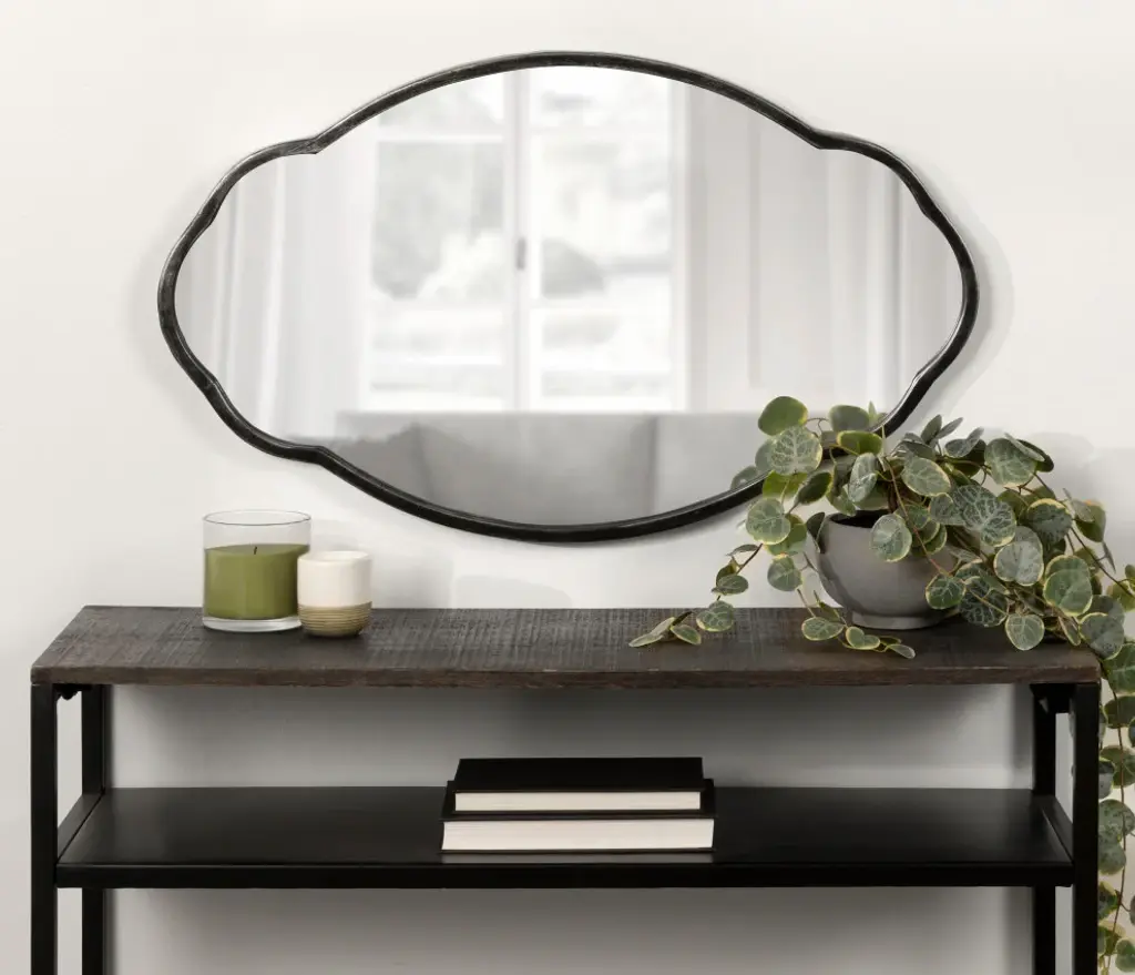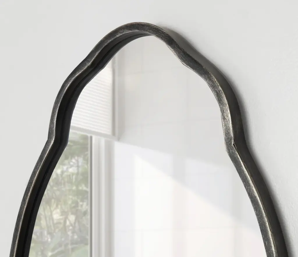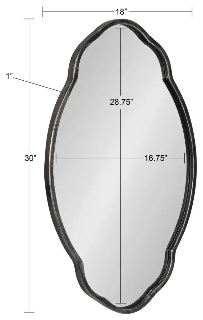 This wall mirror is sure to dazzle family and guests alike when you display it proudly in your home. The Magritte mirror takes inspiration from traditional decor design, featuring a delicate oval shape, black finish, and scalloped edges. With its eye-catching, bold style, it would make an excellent addition to any mid-century living room, bedroom, bathroom, dining room, or kitchen. Adding a mirror to your wall adds dimension to your space, allowing the room to feel more open due to the spreading of light. Its overall dimensions are 18 inches wide by 1.13 inches deep by 30 inches tall, making it a bold focal point for your home. The Magritte wall mirror hangs in only a matter of seconds thanks to the convenient sawtooth hangers secured to the back and included hardware for a quick and easy vertical display. There''s no better way to add a splash of farmhouse flair to your home than with this eye-catching, high-quality mirror. It looks excellent on its own or in pairs as a symmetrical wall display or double bathroom vanity. • LOVELY DESIGN: The Magritte wall mirror features a traditional design with scalloped edges and an arched, oval-like shape• QUALITY MATERIAL: The Magritte mirror was crafted with a blend of wooden materials, giving it a lovely yet resilient look• AMPLE SIZE: This large accent mirror is 30 inches high by 18 inches wide, making it a captivating focal point that stands out in multiple room scenes• EXCELLENT IN ANY ROOM: Hang this beautiful accent piece as a bathroom mirror or display it as a statement in your living room, bedroom, entryway, or dining room• EASY TO HANG: Mount this accent mirror in seconds with convenient sawtooth hangers and included hardware for easy vertical installation