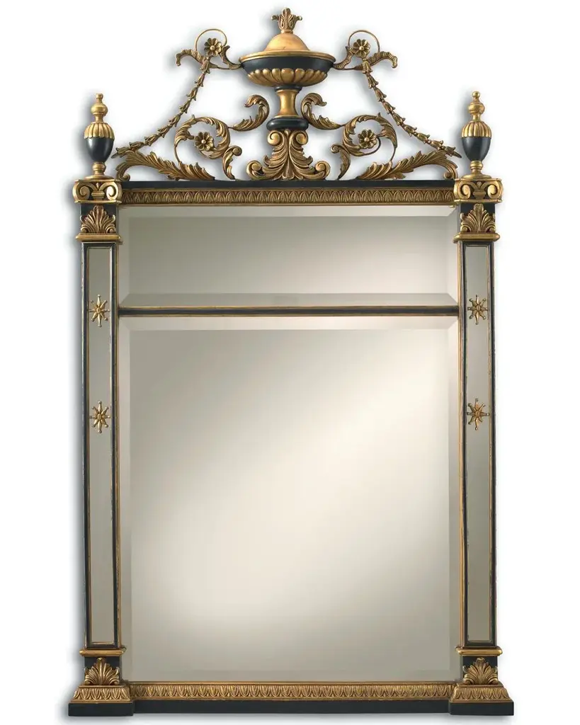 Empire Mirror with Burnished Gold and Black Accents