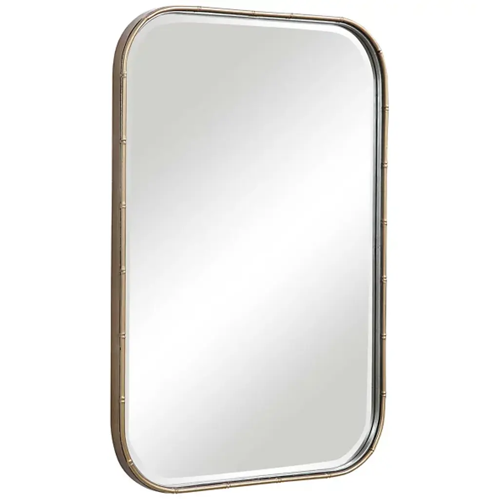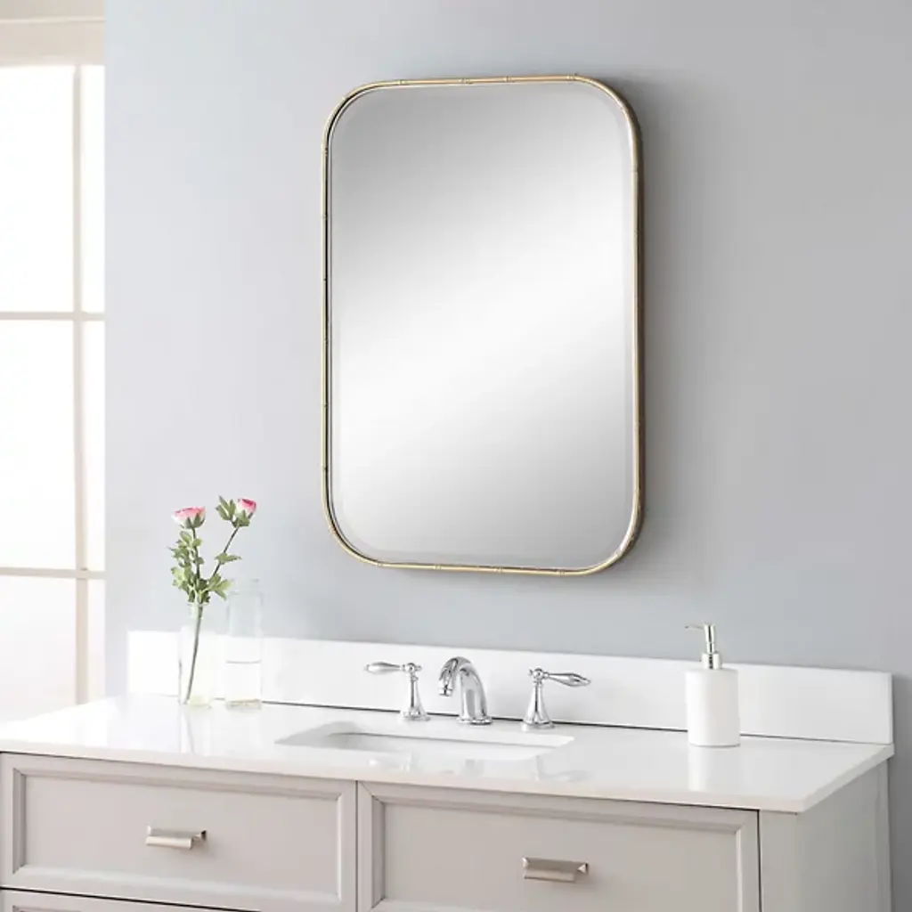 The Malay Vanity Mirror from Uttermost brings natural charm and modern style to your space. This versatile mirror is designed by Grace Feyock and features a bamboo-inspired iron frame; this versatile mirror can be mounted vertically or horizontally to suit your design needs. Its sturdy construction with glass and MDF ensures durability, while its contemporary aesthetic adds a touch of understated sophistication to any room. Perfect for bathrooms, bedrooms, or entryways, the Malay Vanity Mirror is both functional and stylish.