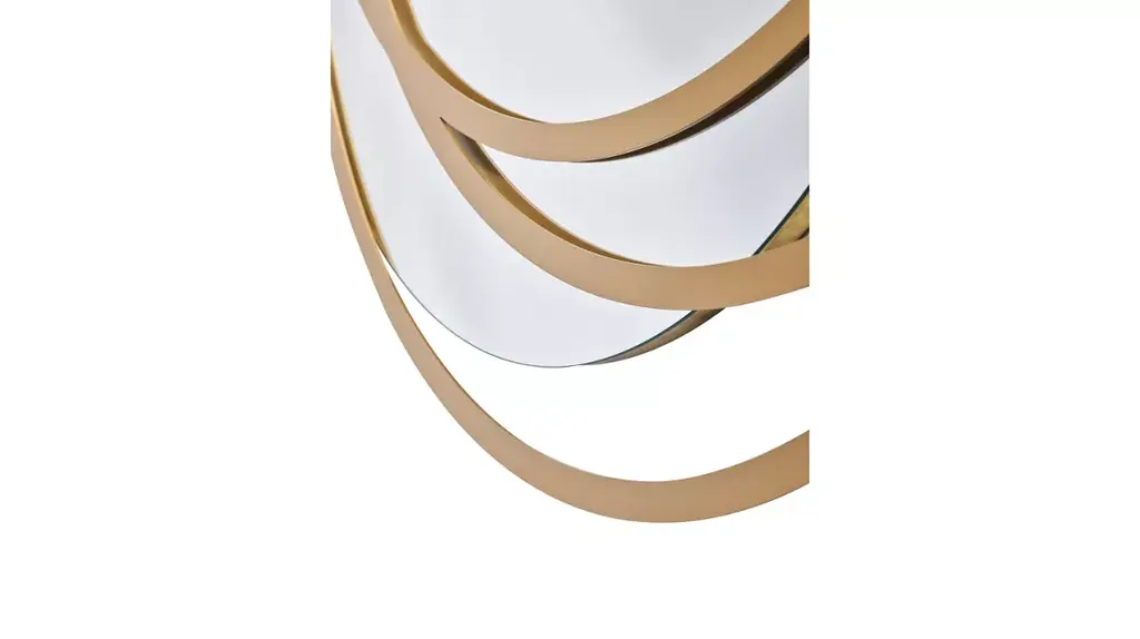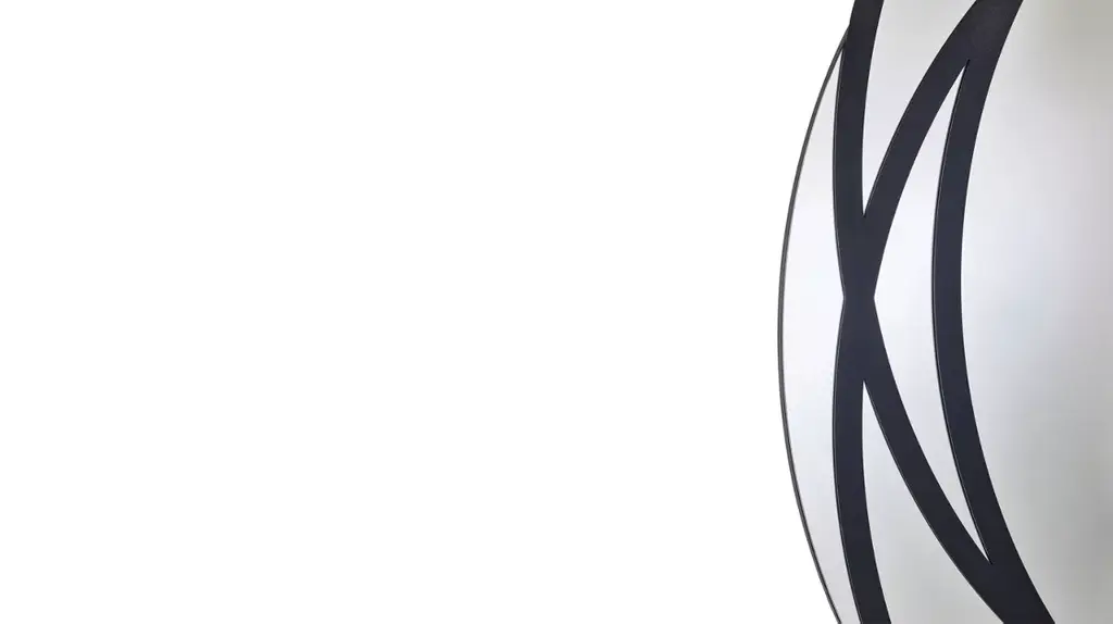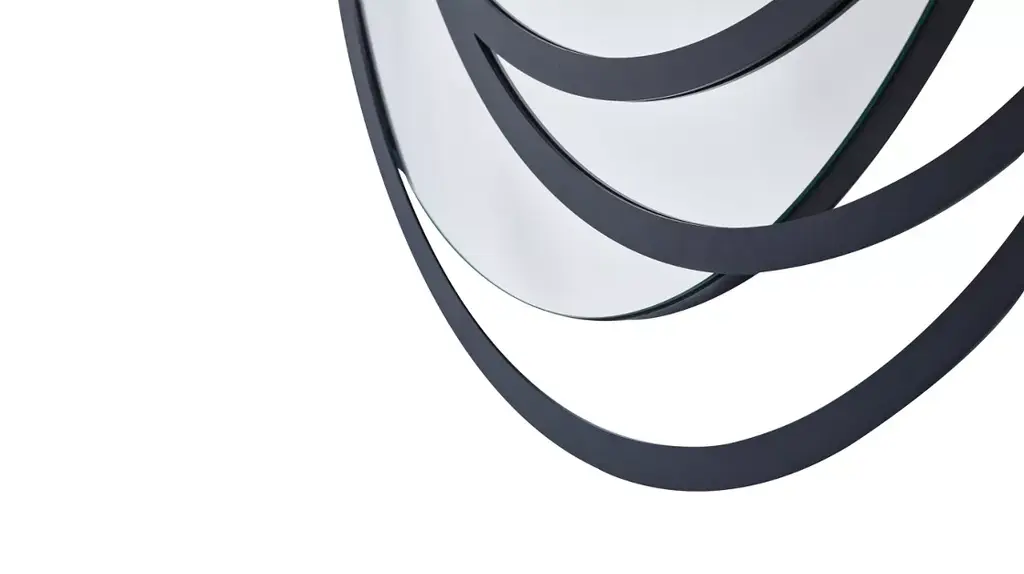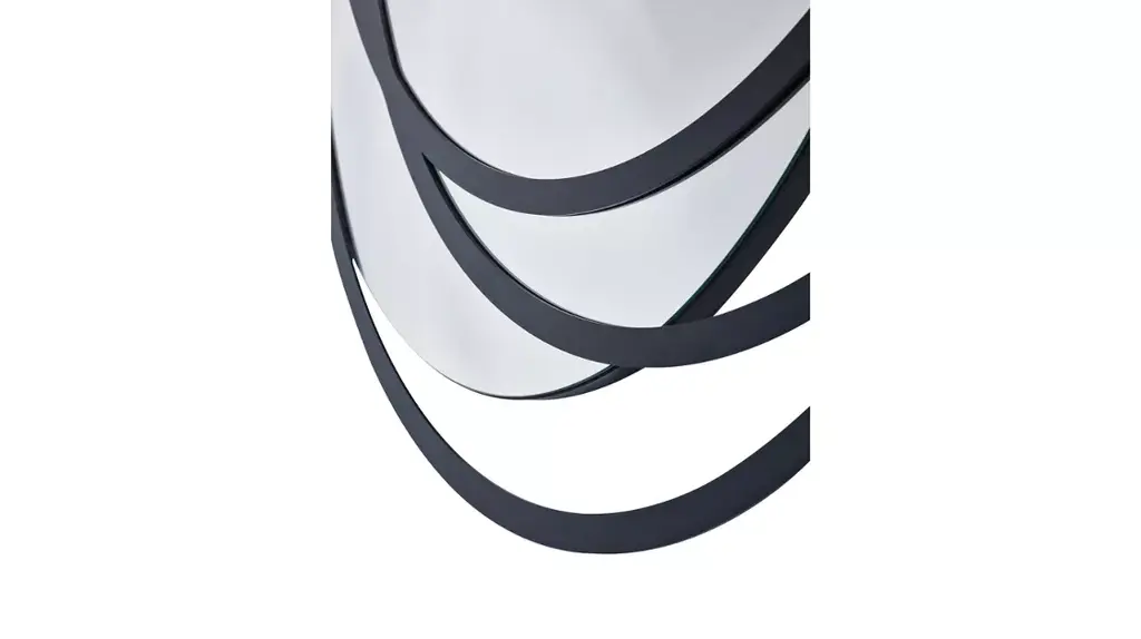 The egg-shaped MANDALA mirror is decorated with three off-axis steel ellipses, whose play of superimposition and misalignment creates a hypnotic graphic effect, reminiscent of Mandalas.