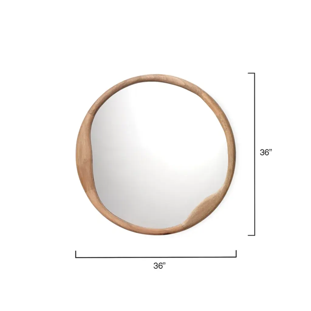 An irregular organic form distinguishes this handmade round wall mirror. The organic, natural silhouette is paired with an unrefined finish, creating a versatile accent that will lighten and add texture to any room in your home.
