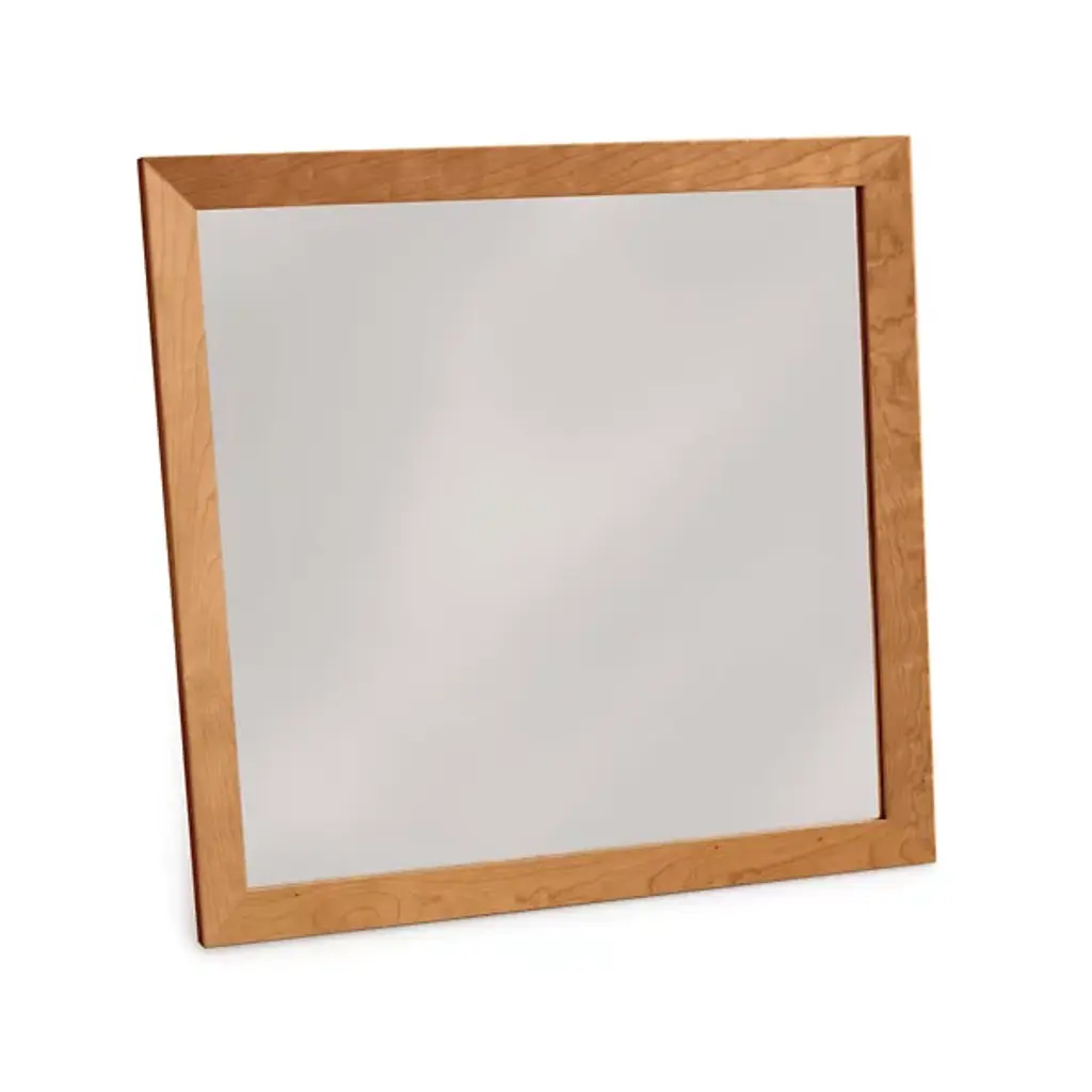 Made in Vermont by Copeland Furniture. The Mansfield Bedroom Collection represents a striking combination of the familiar and the unconventional. The Mansfield Wall Mirror is the perfect addition to a variety of rooms in the home, from the modern bedroom, to home office or living room. Made-to-order in your choice of cherry wood finish and with one of two satin surface finishes: standard Copeland Lacquer top coat or formaldehyde free Copeland Water Based top coat.