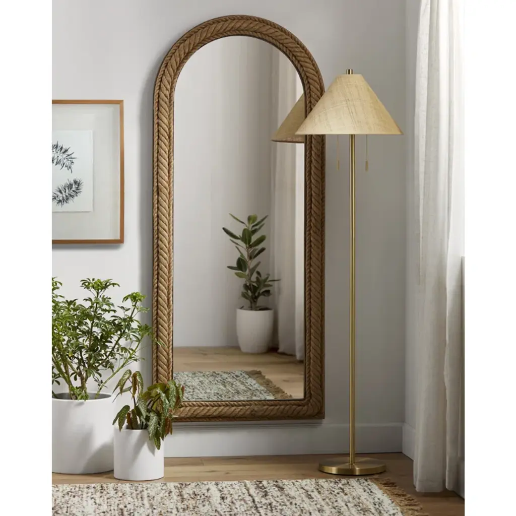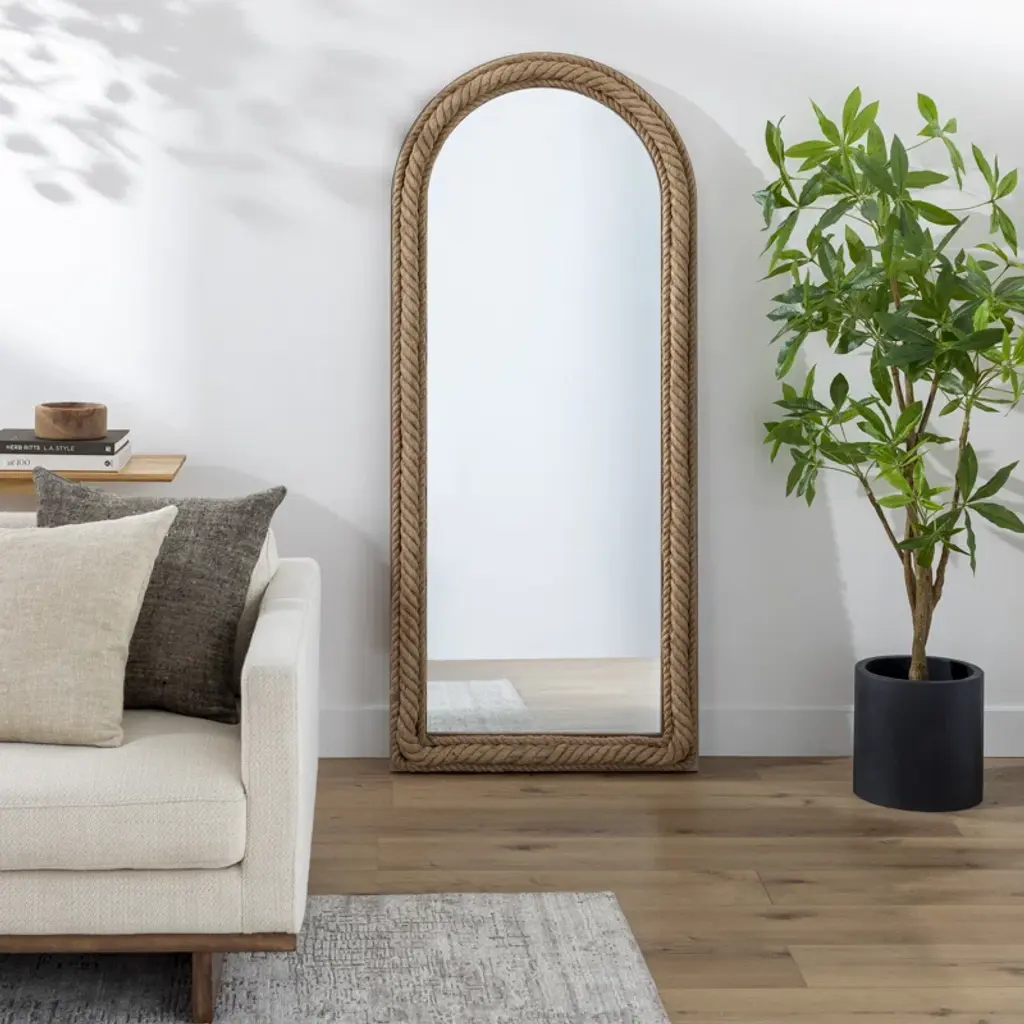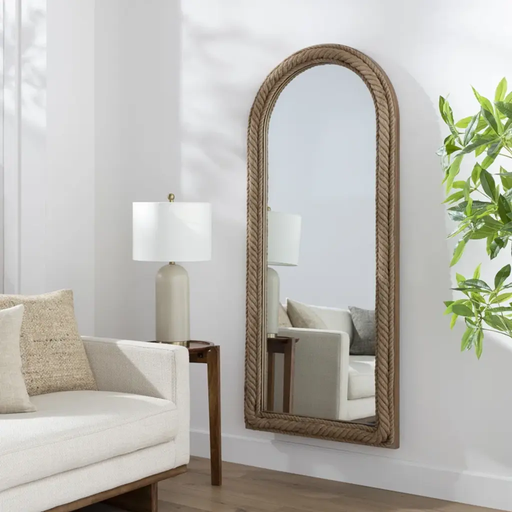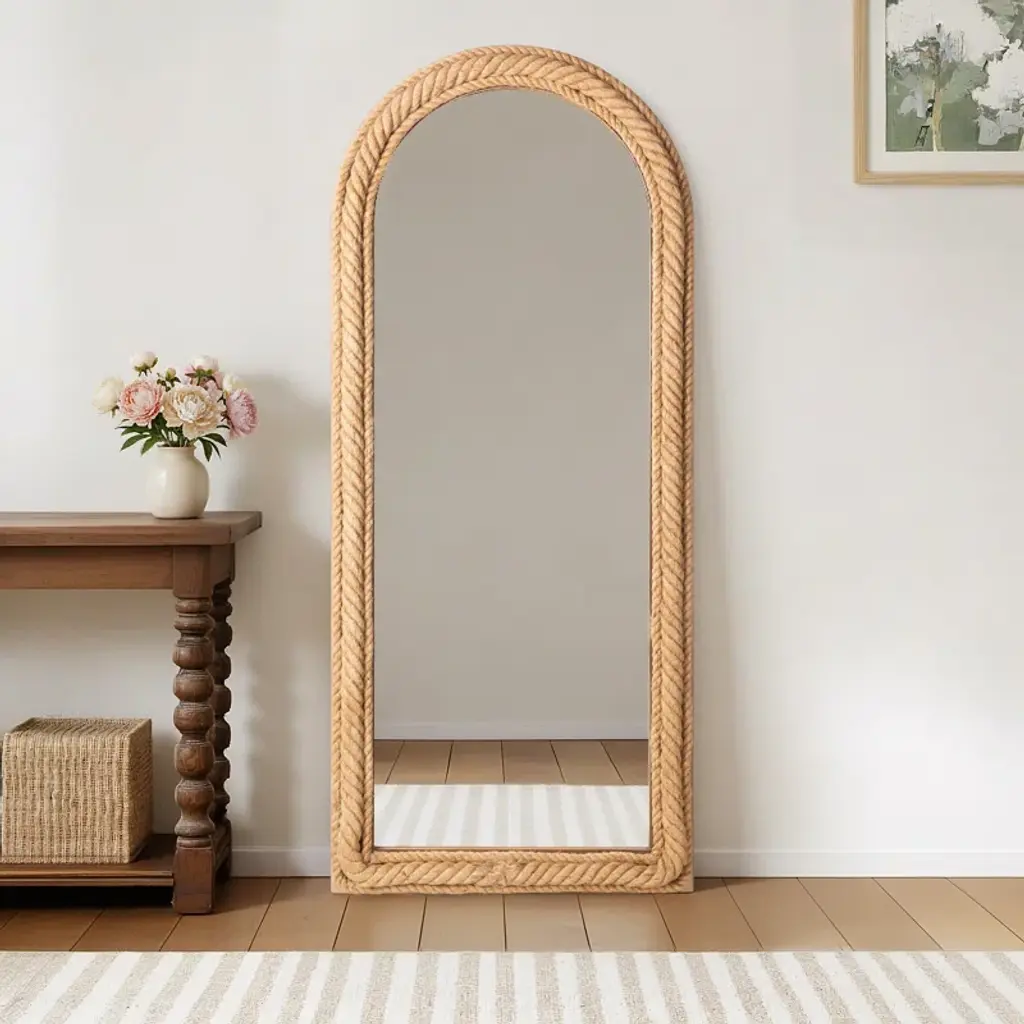 Manufactured Wood/jute Arch Mirror