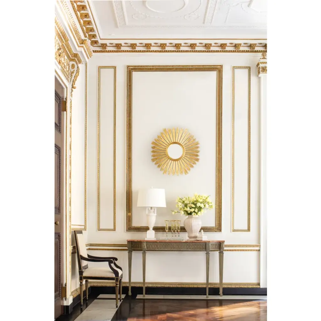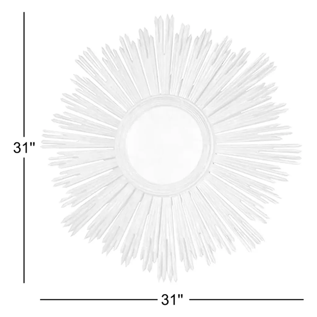 Bring home the charm of handcrafted artistry with this exquisitely hand-painted accent mirror. Its unique, antique finish enhances its vintage appeal. Designed to elevate your décor, the sunburst shape effortlessly complements a variety of styles, adding a touch of timeless elegance to any space.