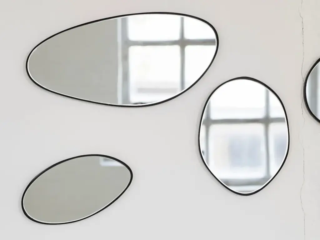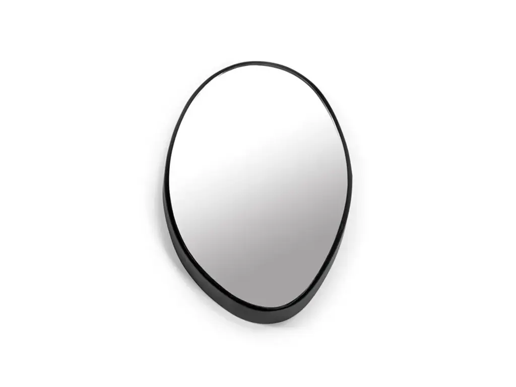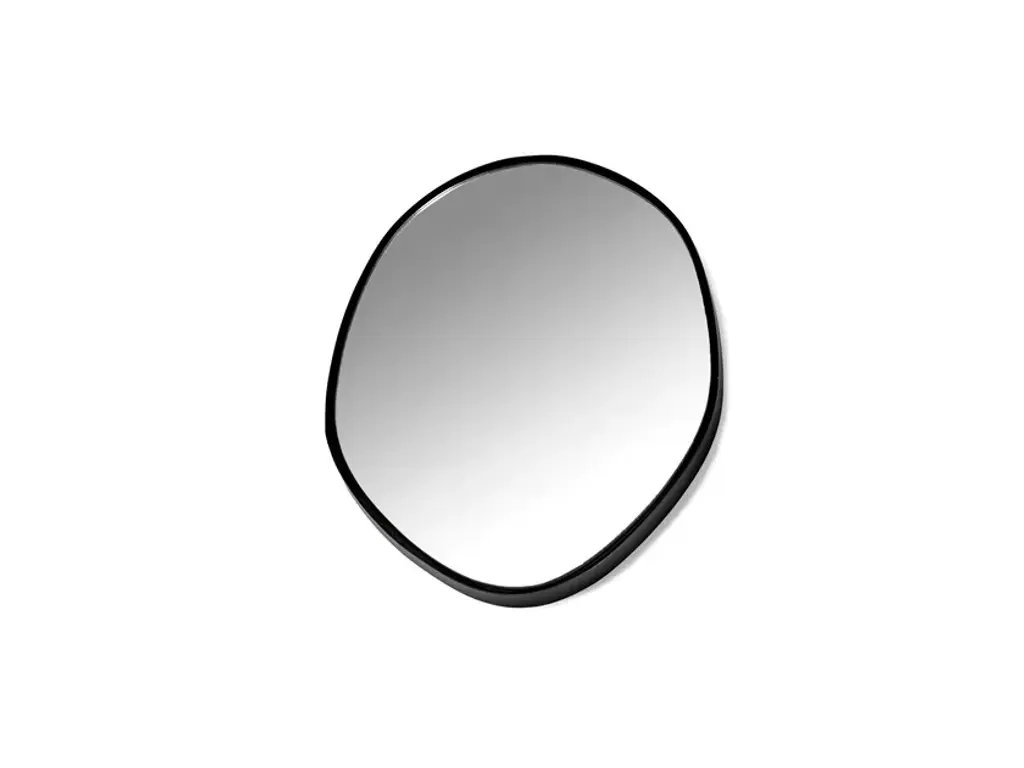 Marie is an organic shaped mirror with steel rim.These mirrors by Marie Michielssen are an original mix of organic shapes and different sizes. Their black rim contrasts nicely with the straight lines of other items in the room, adding a surprising visual accent to any wall. The mirrors come in different shapes.Eclectic, a world full of wonderful extremes based on a well-thought-out structure. That is the first thing that comes to mind for the accessories collection of Marie Michielssen. Serax ’s resident designer likes variety, both in style and in her use of materials and colours. From papier-mâché through concrete to porcelain, cheerfully coloured or in muted natural colours, inspired by constructivism or by the earth in its most rudimentary form, each collection is completely different.
