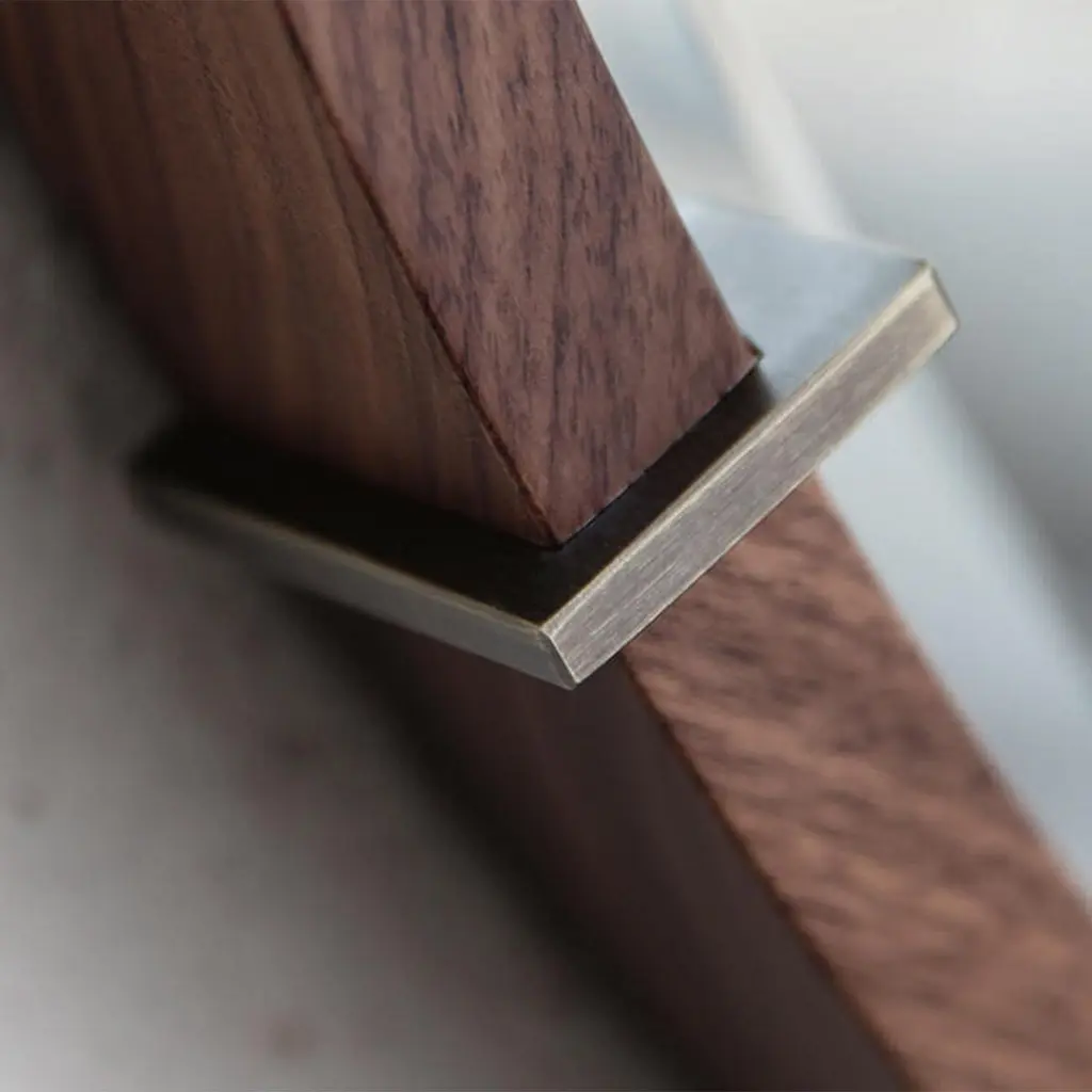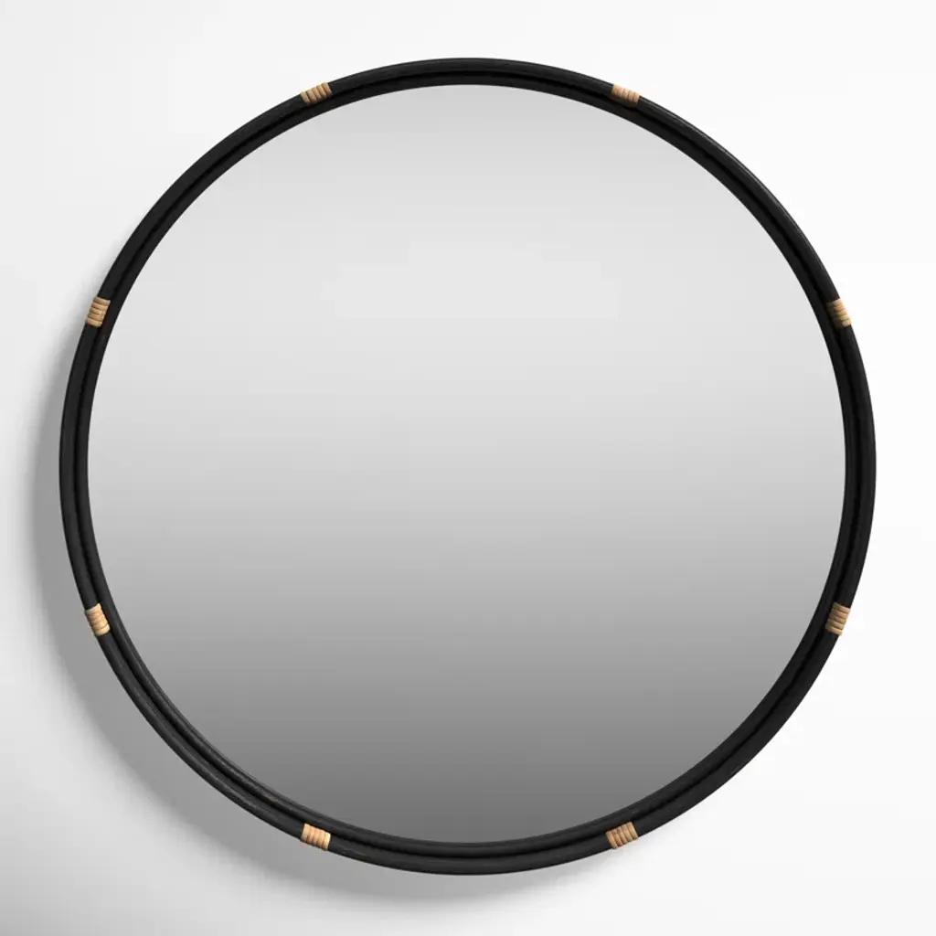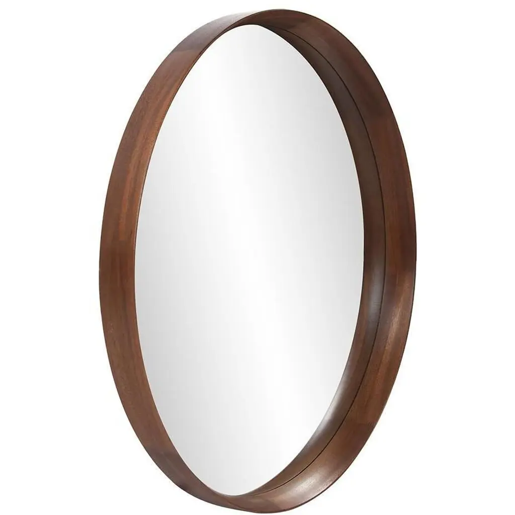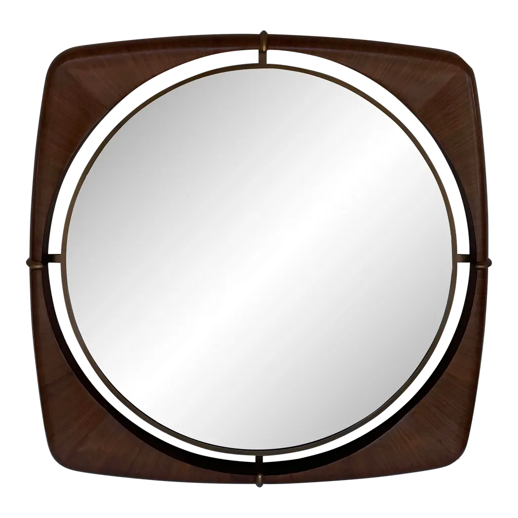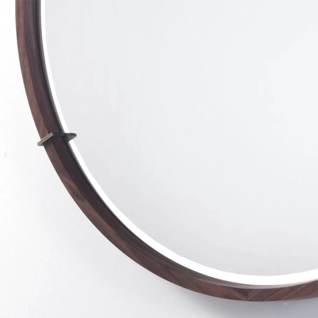 Mirror Mark Round with solid walnut wood round framewith 3 brushed bronzed solid brass inserts. With roundbevelled mirror glass.