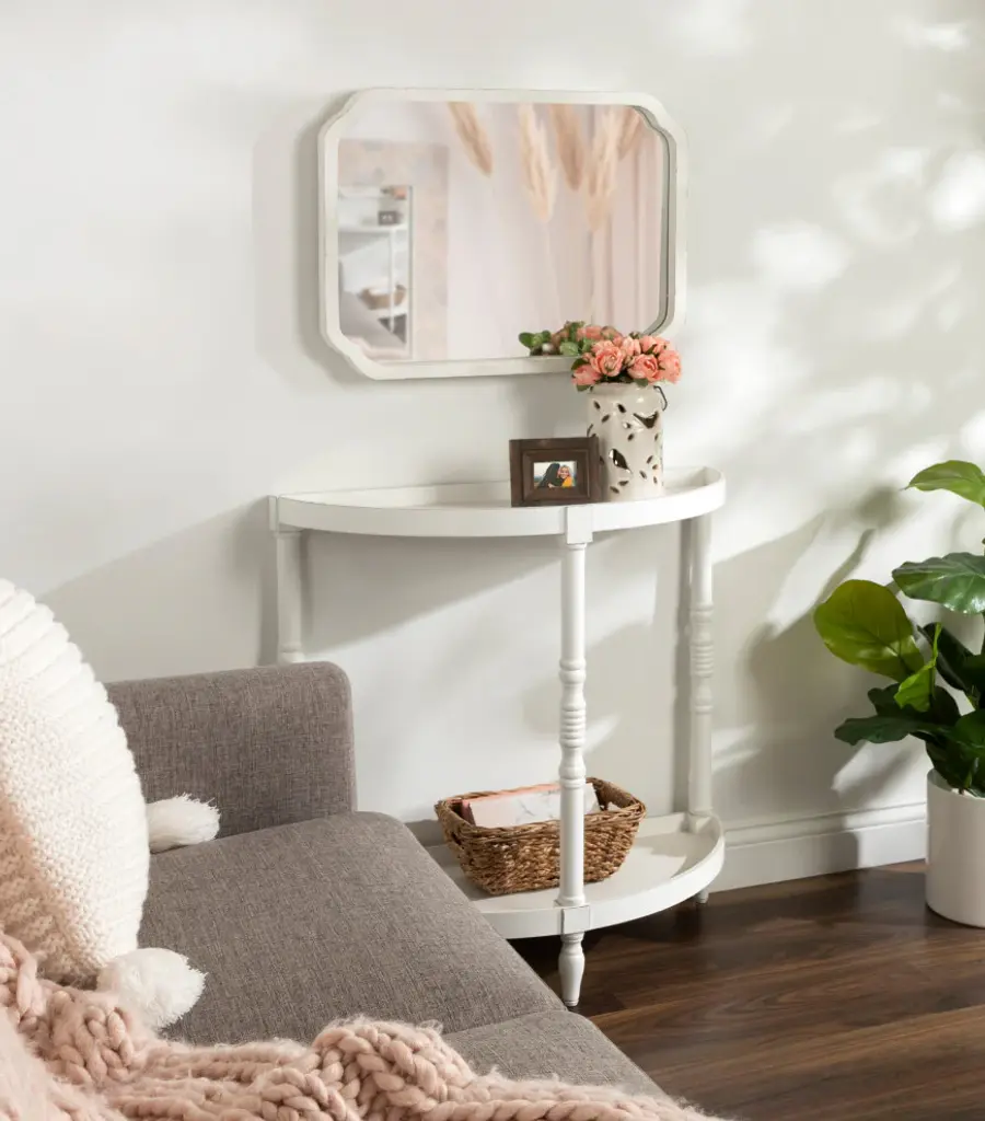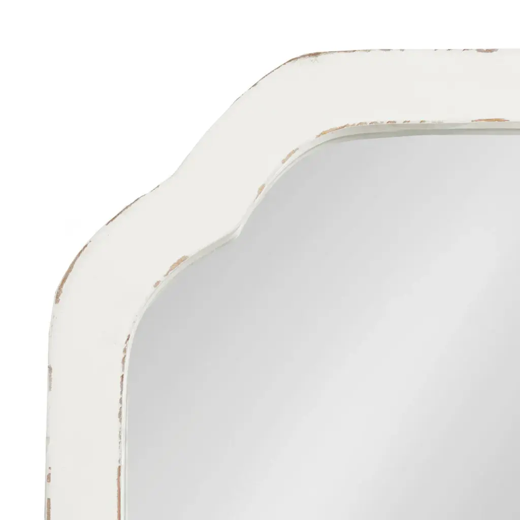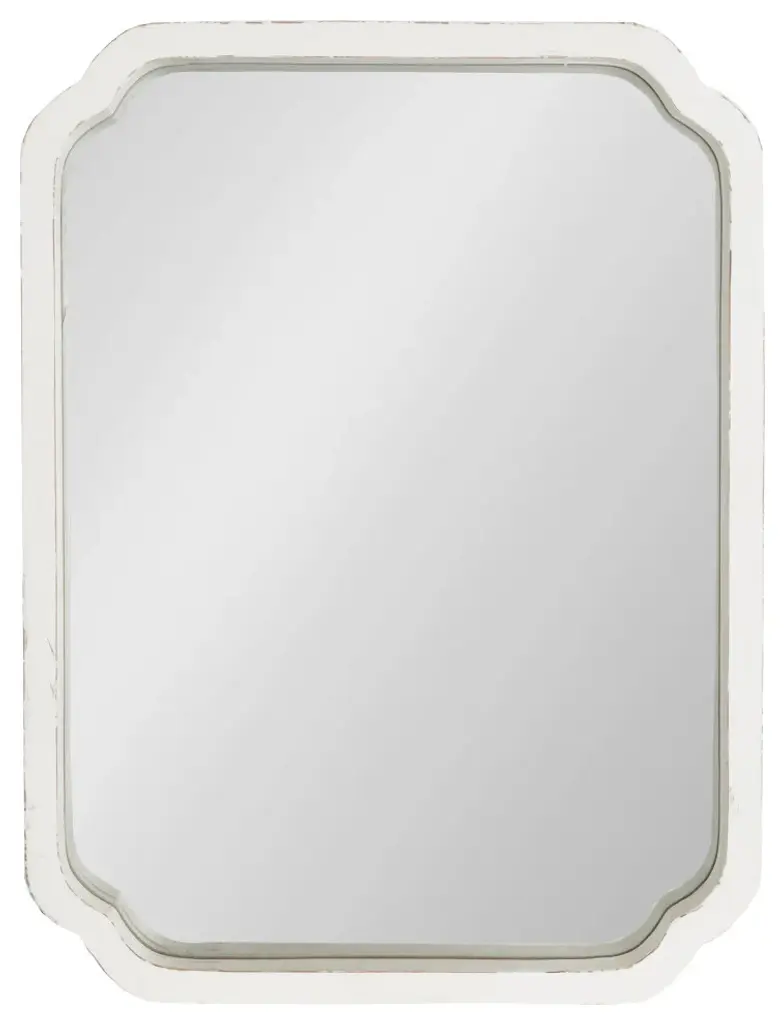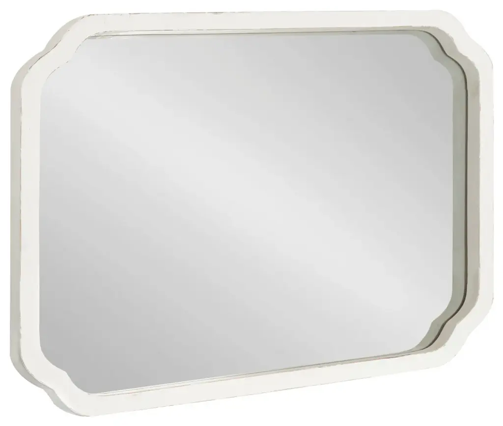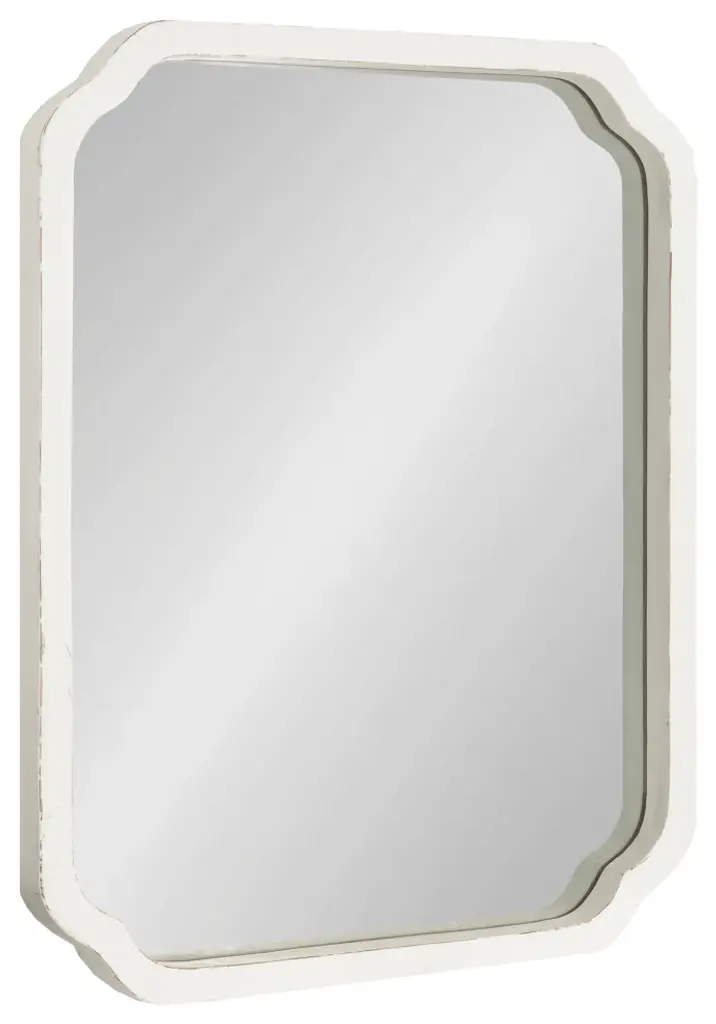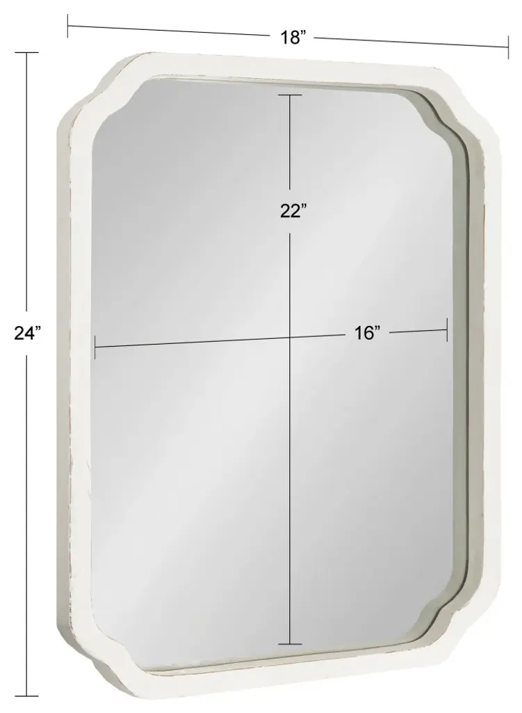 Decorate your home with a vibrant and timeless accent piece with the Marston rectangular mirror. Inspired by rustic aesthetics, this mirror features a beautiful rectangular shape with scalloped corners, providing an elegant, vintage look. The frame of this rectangle mirror is made from solid wood, creating an accent piece that looks and feels robust, lasting for multiple years of display. Its distressed, coastal white finish gives it an antique look without the need to shop secondhand. The overall dimensions of the Marston are 18 inches wide by 1.75 inches deep by 24 inches tall, making it a perfectly-sized and eye-catching statement piece for any wall of your home. This size is excellent for showcasing this mirror as a decorative focal point or in a display of multiples. If you''re looking to remodel your bathroom or powder room with a farmhouse aesthetic, the Marston is also excellent for hanging as a bathroom mirror above your vanity. Use the metal D-ring hangers attached to the back of the frame to hang this mirror in any decor space it can truly shine.• RUSTIC LOOK: The vintage-inspired Marston mirror features a distressed white finish and scalloped corners, creating an antique aesthetic• QUALITY MATERIAL: The frame of the Marston has a solid wood construction for a resilient yet rustic look for the coastal farmhouse-style home• AMPLE SIZE: The overall dimensions of the Marston are 18 inches wide by 1.75 inches deep by 24 inches tall, making a grand statement on any wall • VERSATILE: Use this beautiful mirror as a decorative focal point to capture the vibrancy of your space or use it as a functional farmhouse bathroom mirror above your vanity• EASY TO HANG: D-ring hangers are attached to the back of the frame for quick and easy installation vertically or horizontally