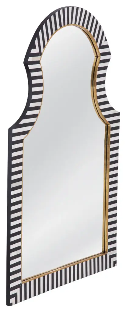 The Martens Wall Mirror showcases a modern boho aesthetic with its captivating arched design and elegant black and cream bone frame. This eye-catching piece adds a touch of sophistication and charm to any space, effortlessly blending contemporary style with timeless appeal. Crafted with meticulous attention to detail, it serves as a versatile accent that enhances the ambiance of your home decor.Features:Exudes modern sophisticationArched design adds an elegant touch to any spaceBone accents add a natural element to any spaceCrafted with quality materials for stylish reliabilityFor over a century, Bassett Mirror has been synonymous with style and quality, transforming homes with its sophisticated and timeless designs. With a wide-ranging collection of furniture, lighting, mirrors, and art, Bassett Mirror seamlessly blends modern style with classic appeal. From rustic modern to luxe glam, each piece is thoughtfully crafted to inspire and elevate any space. Committed to exceptional value and customer care, Bassett Mirror makes it easy for homeowners to create beautiful, personalized interiors with confidence.
