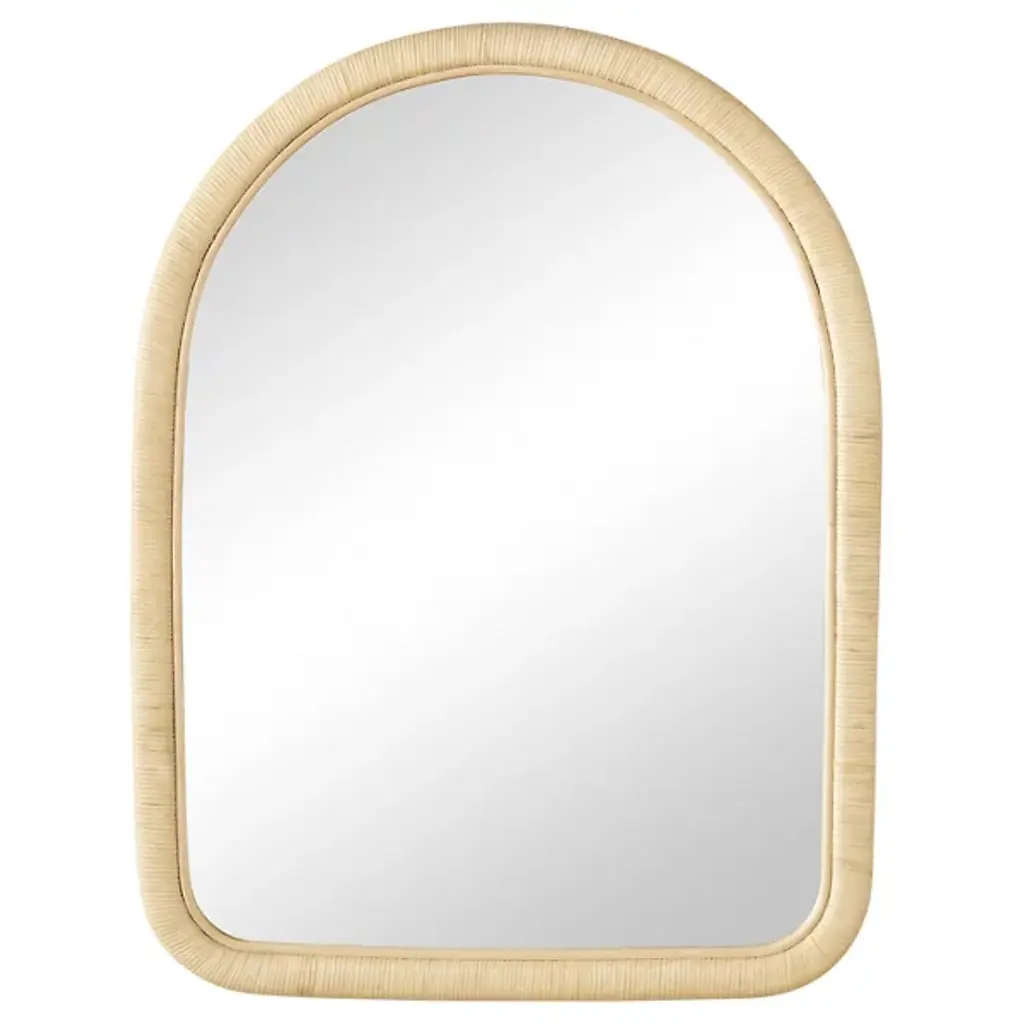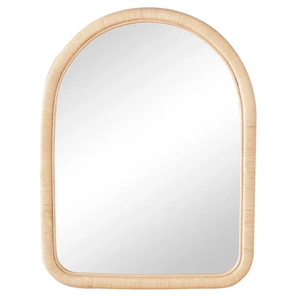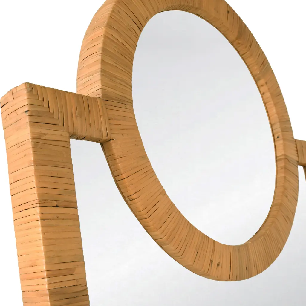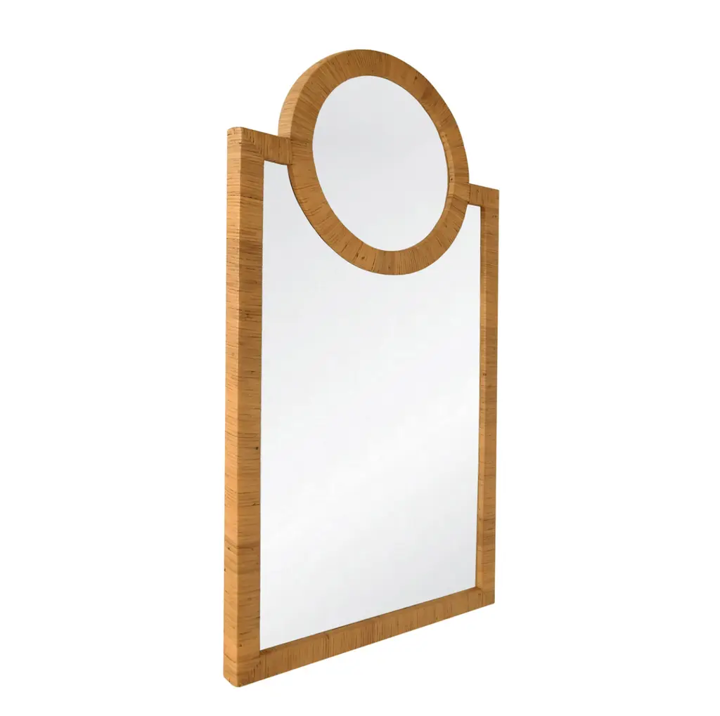New Item. Rattan Wrapped Mirror with Circle Detail. *Rattan has natural variations and may differ slightly between panels. 26" W X 48" H X 2" D Width:26.00" Height:48.00" Depth:2.00"