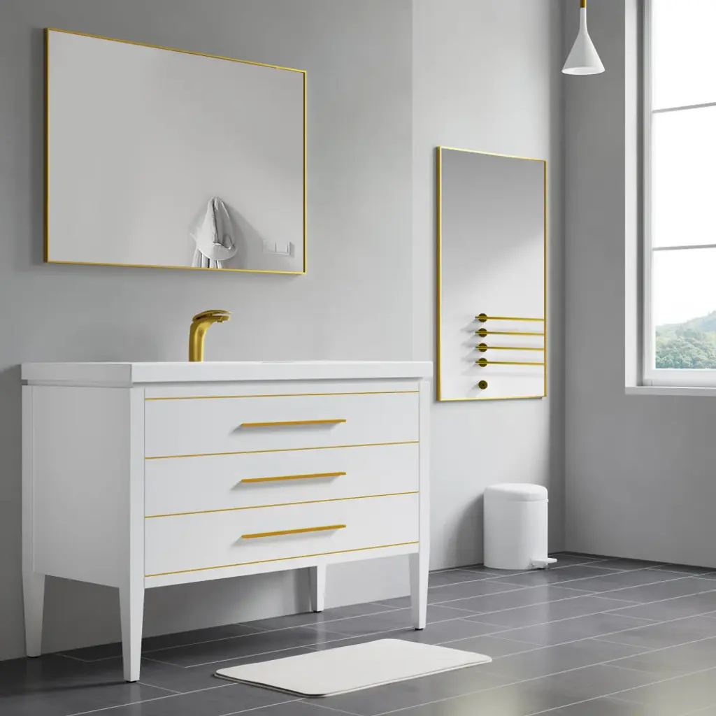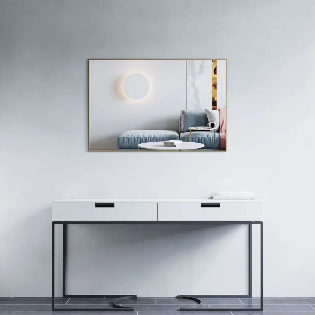 Lustrous, wall-mounted mirror designed to be the perfect accent to any room. This classically styled piece is easy to match with any decor. Sturdy aluminum metal fram is available in Black, Gold, and White.