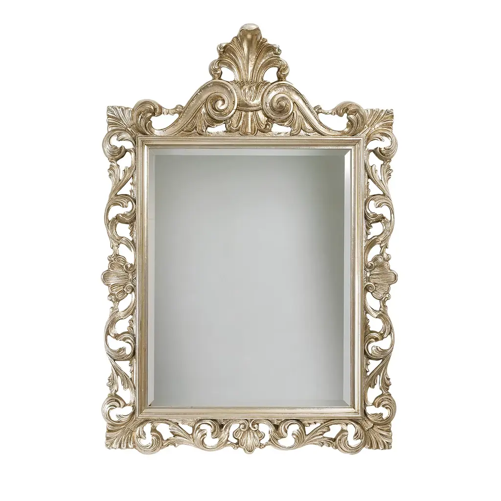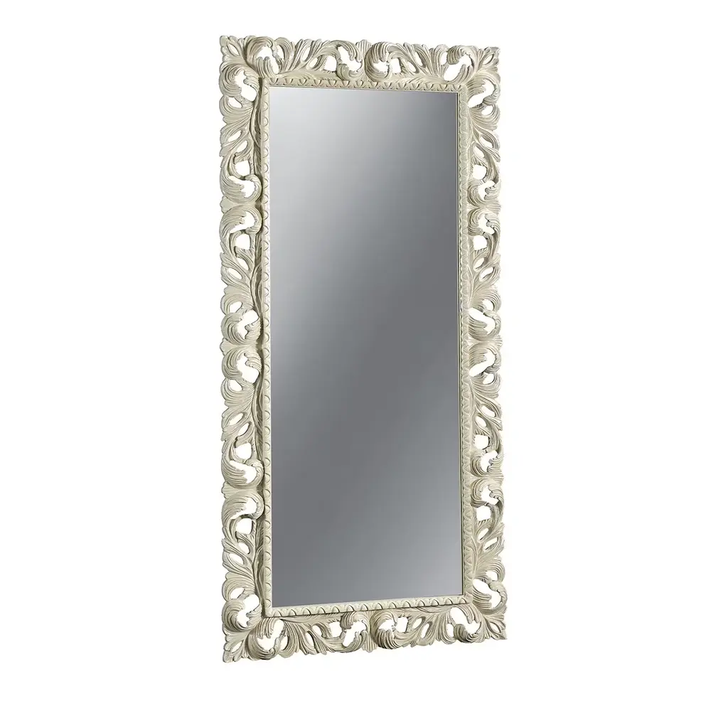 MAUVE - Solid wood frame hand carved - coated white finish.Handcarved mirrors. Numerous shapes (round, square, rectangular, oval,…) and designs available (retro, contemporary, modern,…). Exist in several sizes and many different finishing and colours.