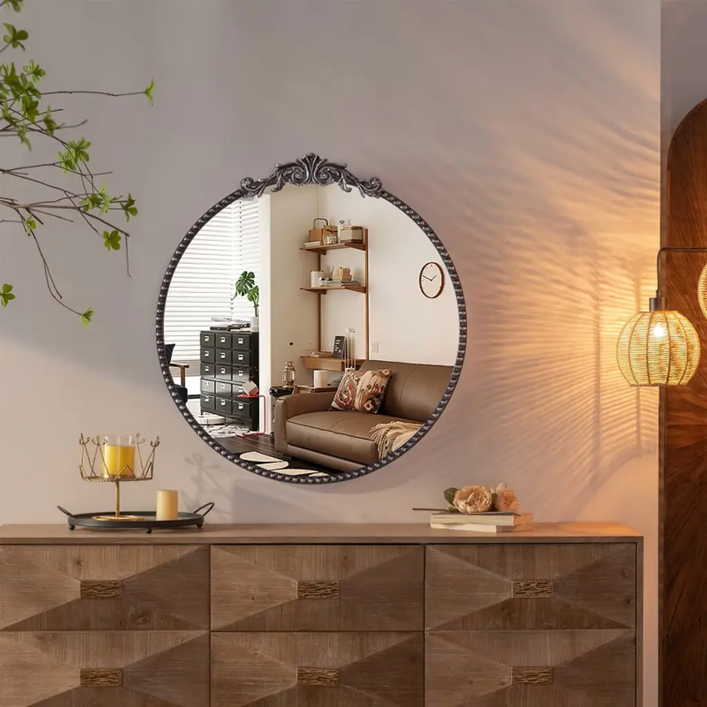 Minimalist Round Design: The simple, clean lines of the round shape offer a timeless look that fits seamlessly into any room. Durable Metal Frame: Made with a robust metal frame for added strength and style. Versatile for Any Room: Perfect for living rooms, hallways, bathrooms, or bedrooms, bringing a touch of elegance to your d¨¦cor. Clear, Reflective Glass: High-quality glass ensures a clear, undistorted reflection for daily use. Easy to Mount: Includes all necessary hanging hardware for simple installation.