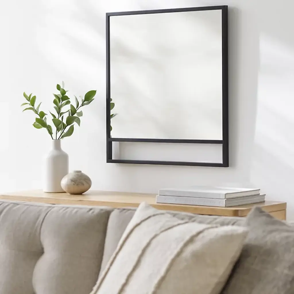 The Maxxis Accent Rectangle Mirror from Surya brings eloquent modern style and adaptability to your home. Framed in slim yet durable iron, its rectangular design offers a minimalist aesthetic that complements any room. The open lower frame creates a sense of lightness, adding a refined touch without overwhelming its surroundings.