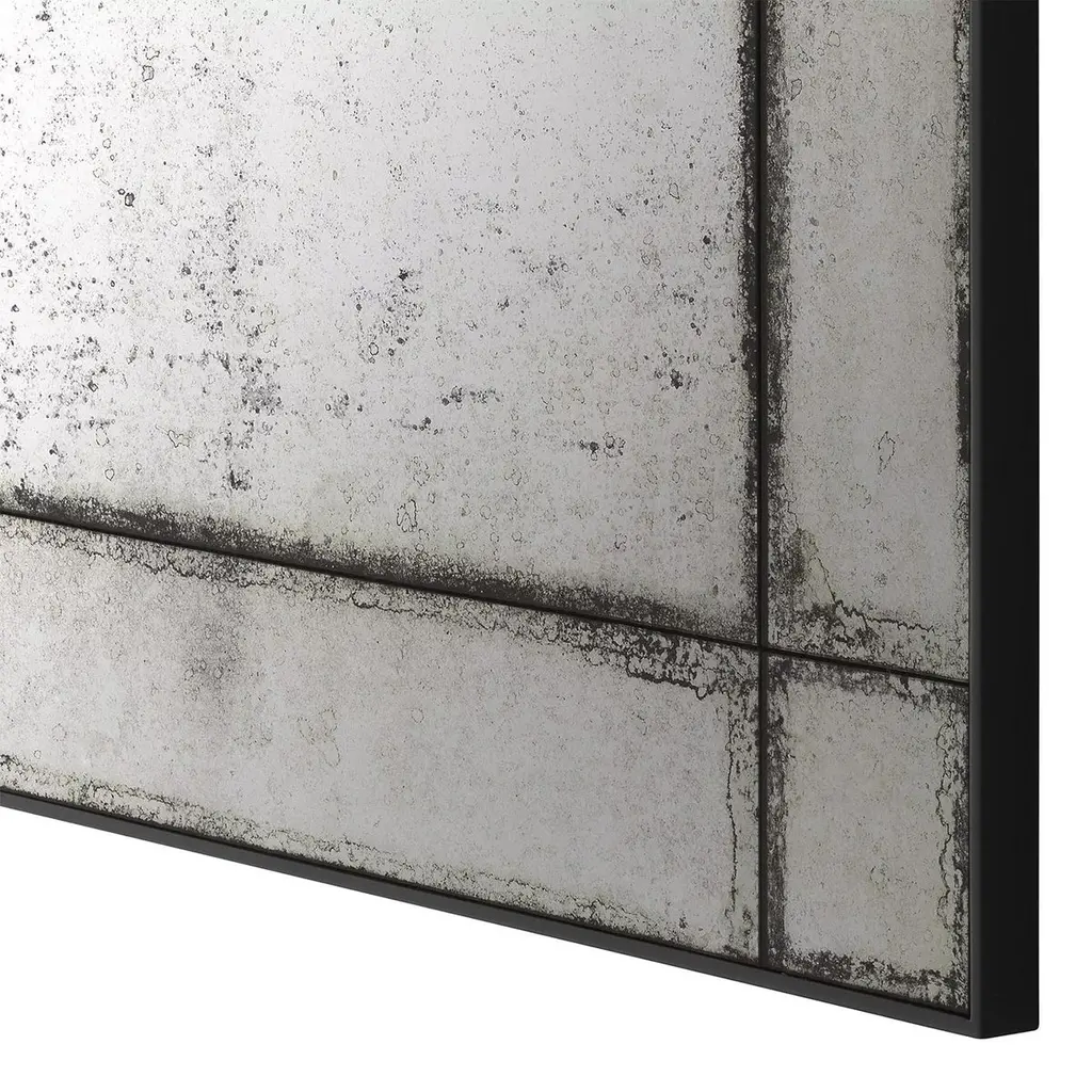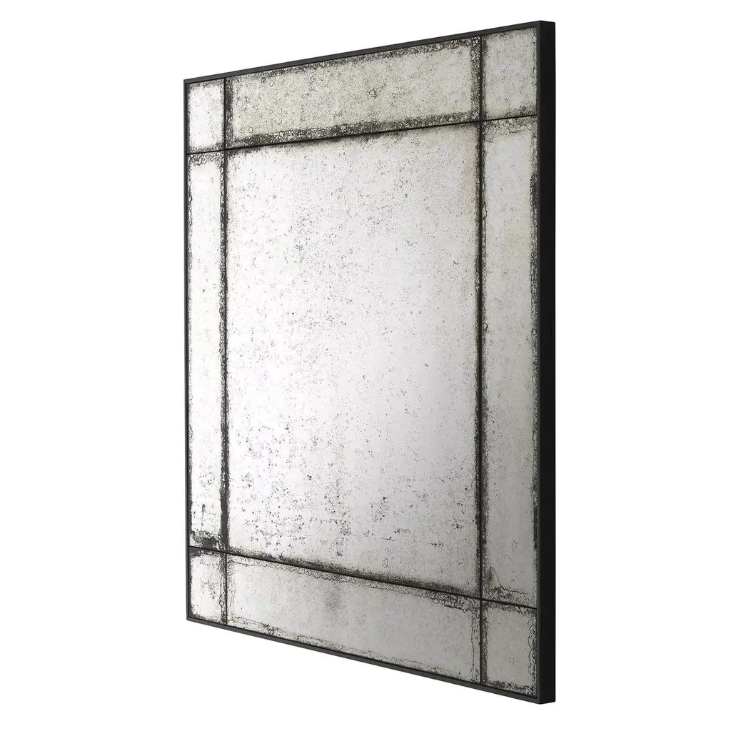 Mirror Mc Arthur Square Aged with wooden back structureand with aged mirror glass, frame in solid mahogany woodin black finish.