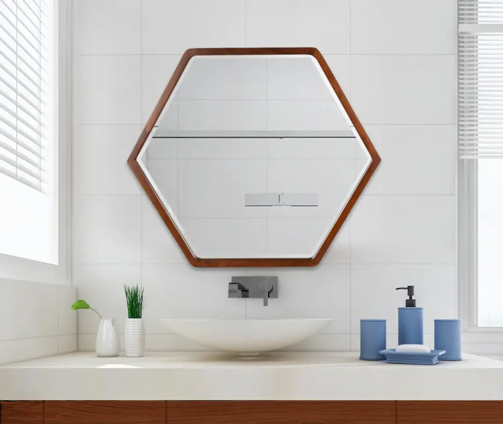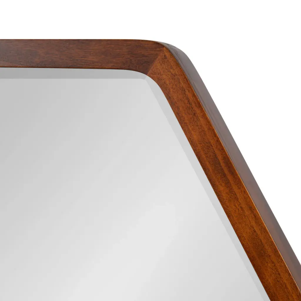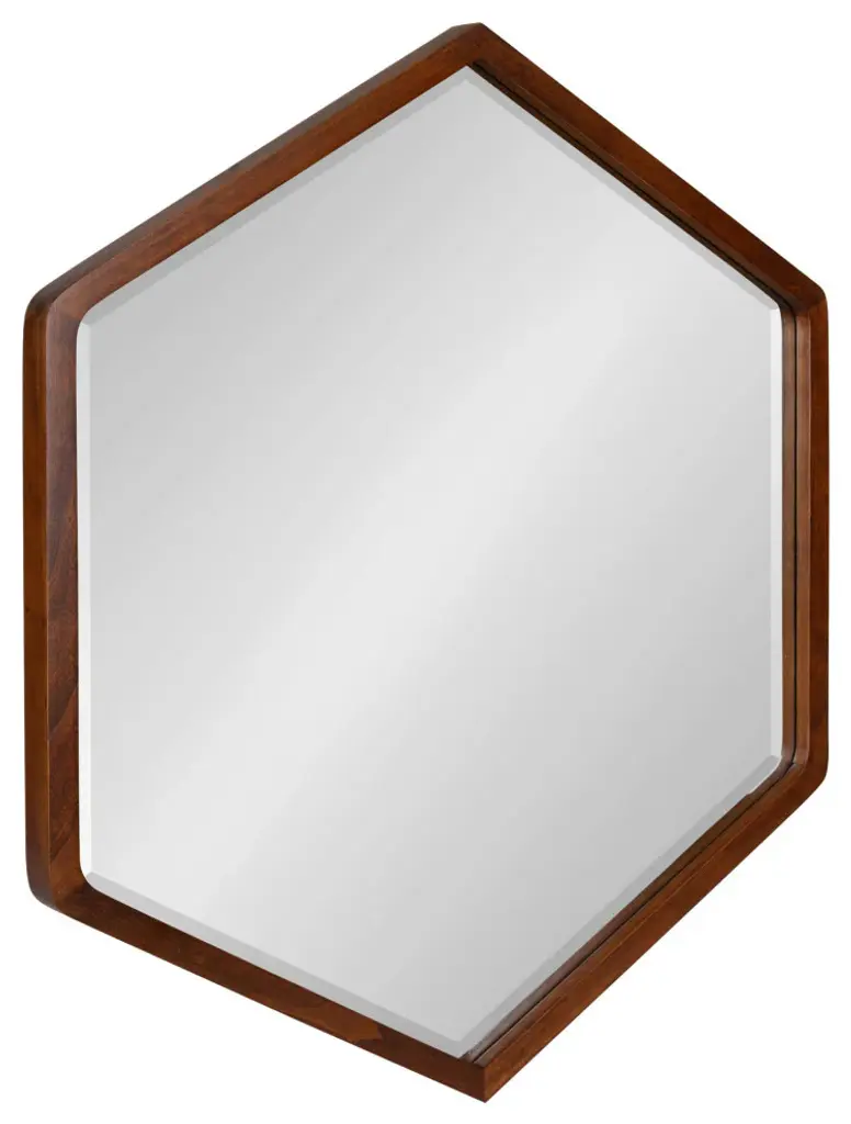 Mclean Hexagon Wood Framed Wall Mirror, Walnut Brown 26x30