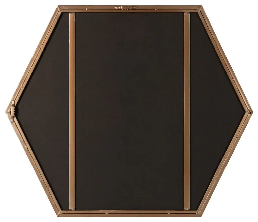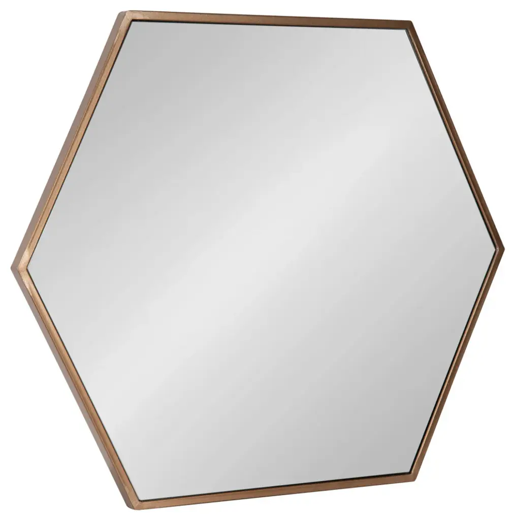 An avant-garde and geometric mirror is the type of home accessory that showcases your modern decor aesthetic. The McNeer wall mirror displays your taste in an eye-catching statement while adding vibrancy and light to your space. The hexagon shape, sophisticated bronze trim, and ample surface space of the mirror make the Kate and Laurel McNeer mirror an accessory and a showpiece. Use it in a bathroom for a decorative effect over a vanity or use it as an impressive piece of wall art. Adding a mirror enhances your space by spreading more light, making it appear more dimensional, vibrant, and open-concept. Hang it in an entrance hall, over a bench or couch, in the dining room, or any wall that needs more character. A well-placed mirror creates harmony and pulls a place together as it reflects the space. The dimensions are 25.75 inches tall by 22 inches wide, creating a commanding presence. Hang the McNeer wall mirror in a matter of seconds with the metal sawtooth hangers attached to the back of the frame.• VERSATILE SHAPE: The clean-lined silhouette of this hexagon wall mirror brings about pure visual appeal• QUALITY MATERIALS: The frame of this beautiful hexagon wall mirror has an ultra-resilient metal construction to provide you with multiple years of display• LARGE SIZE: With an outside frame size of 22 inches by 25.75 inches, the shape and size of the McNeer Mirror is perfect to put over a dresser or any piece of furniture you want to enhance• VISUAL STYLE: An attractively framed mirror is the affordable way to decorate your wall while bringing light and space into a room• EASY TO HANG: The McNeer wall mirror hangs in a matter of seconds with the metal sawtooth hangers attached to the back of the frame