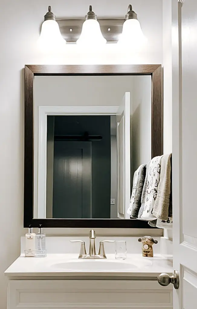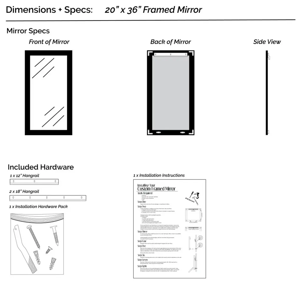 Brushed metallic tones are paired with the unpretentious lines of the Meade to create a contemporary framed mirror. The shallow depth of the Meade makes this an ideal choice for areas with limited space.Hangrail for installation will be applied on the width of the frame. All assembly hardware and instructions will be included. Additional hangrails are included if the opposite orientation is desired for installation. The dimensions displayed are the final outside dimensions of the frame, including the mirror. CATII safety backing applied on all mirrors. Approved for high-moisture areas such as bathrooms.