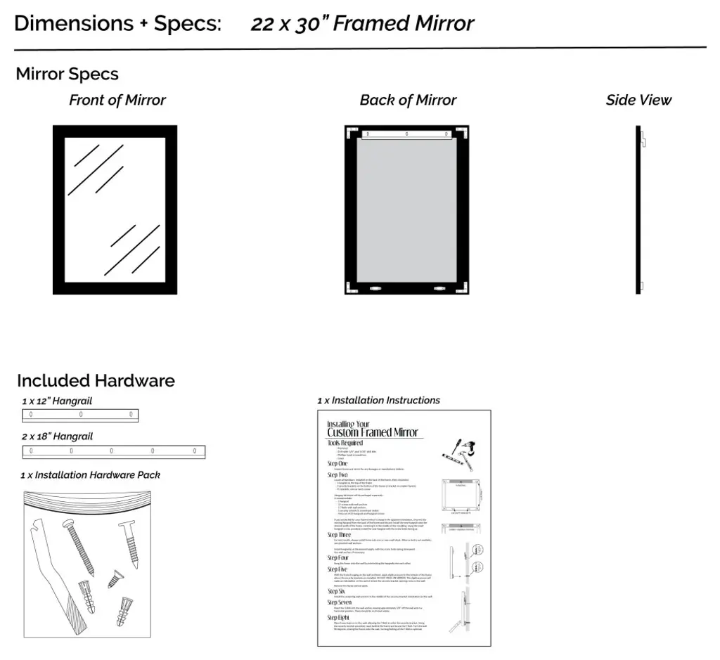 With its matte, white finish paired with unpretentious lines, the Meade is the perfect framed mirror to match any style. The shallow depth of the Meade makes this an ideal choice for areas with limited space.Hangrail for installation will be applied on the width of the frame. All assembly hardware and instructions will be included. Additional hangrails are included if the opposite orientation is desired for installation. The dimensions displayed are the final outside dimensions of the frame, including the mirror. CATII safety backing applied on all mirrors. Approved for high-moisture areas such as bathrooms.