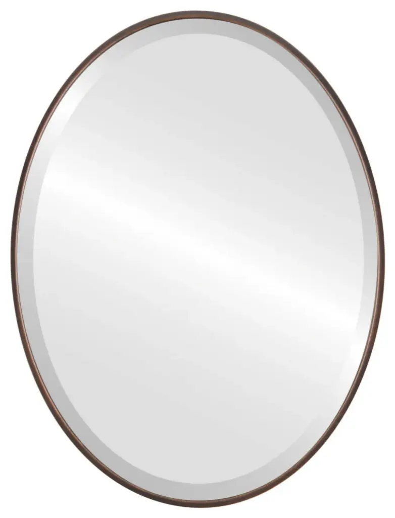 This rubbed bronze oval wall mirror is the perfect addition to a modern-day home. The Medina oval floater frame is one of our thinnest frames with it''s face. The oval wall mirror is mounted from the front but appears to be inside the frame giving it a sense of three-dimension in the overall look. The rubbed bronze finish is a match for many of the oil rubbed bronze fixtures and hardware that you see in today''s design trends.For additional details on the Medina Rubbed Bronze oval wall mirror, see features and specifications belowFeatures:Gallery Quality, Wood, Hand Finished Oval Frame Gallery Quality, Distortion Free Oval Mirror Easy to Hang - The Hanging Hardware is pre-installed for either vertical or horizontal hanging. Options:This oval frame comes a 1" Beveled MirrorMultiple Colors and Sizes available.