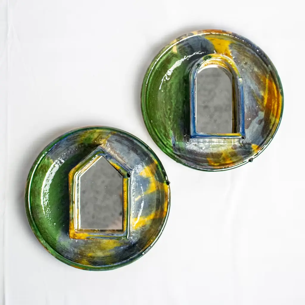 Part of the Meditazione Collection, this artwork by Signora Luna is an exceptional and impactful addition to any space. Featuring a small niche with a mirror at its center, this three-dimensional plate evokes a sense of votive reverence. Crafted by skilled artisans using ancient techniques, this plate reflects the esteemed tradition of Calabrian ceramic craftsmanship from Seminara. This piece will shine with timeless elegance, adding captivating craftsmanship to your decor.