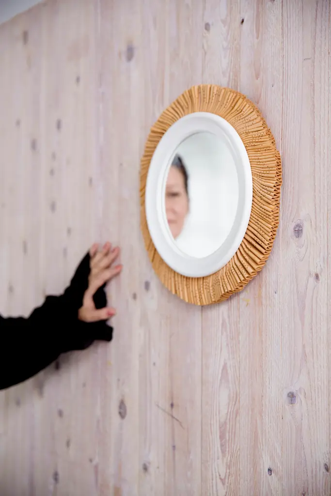 A devil or an angel? The Gloria mirror sure makes you feel like a saint, framed in a collar made of soft reindeer leather from a local tannery in northern Sweden. Reindeer leather is an ethically and ecologically friendly natural material. For centuries, reindeers have provided food, garments and craft products in the Scandinavian Arctic.