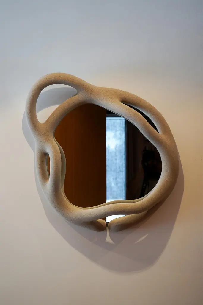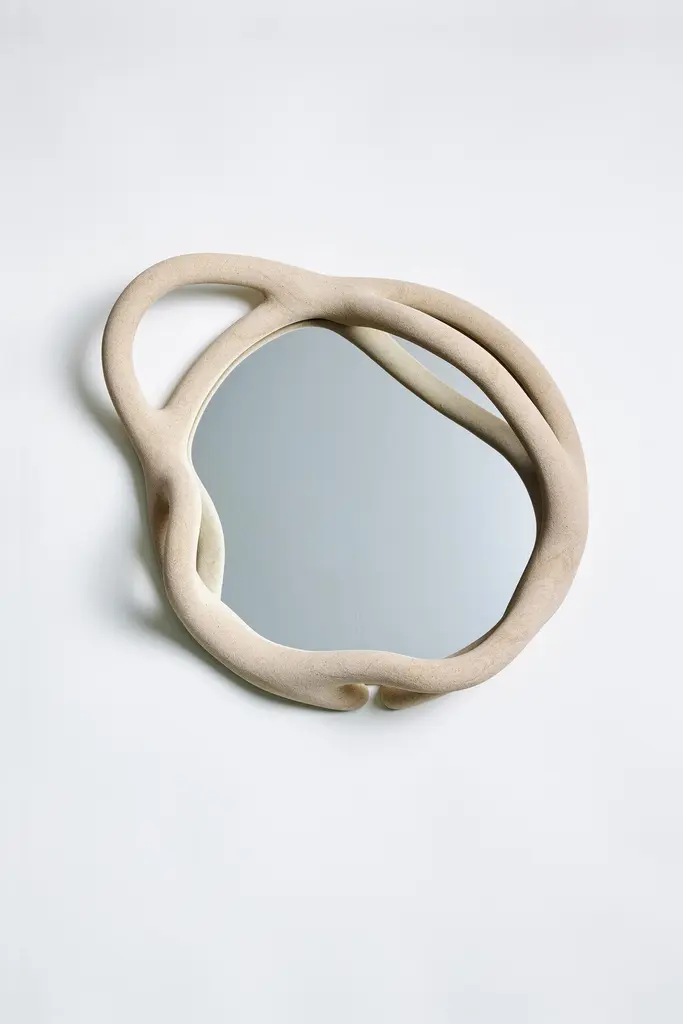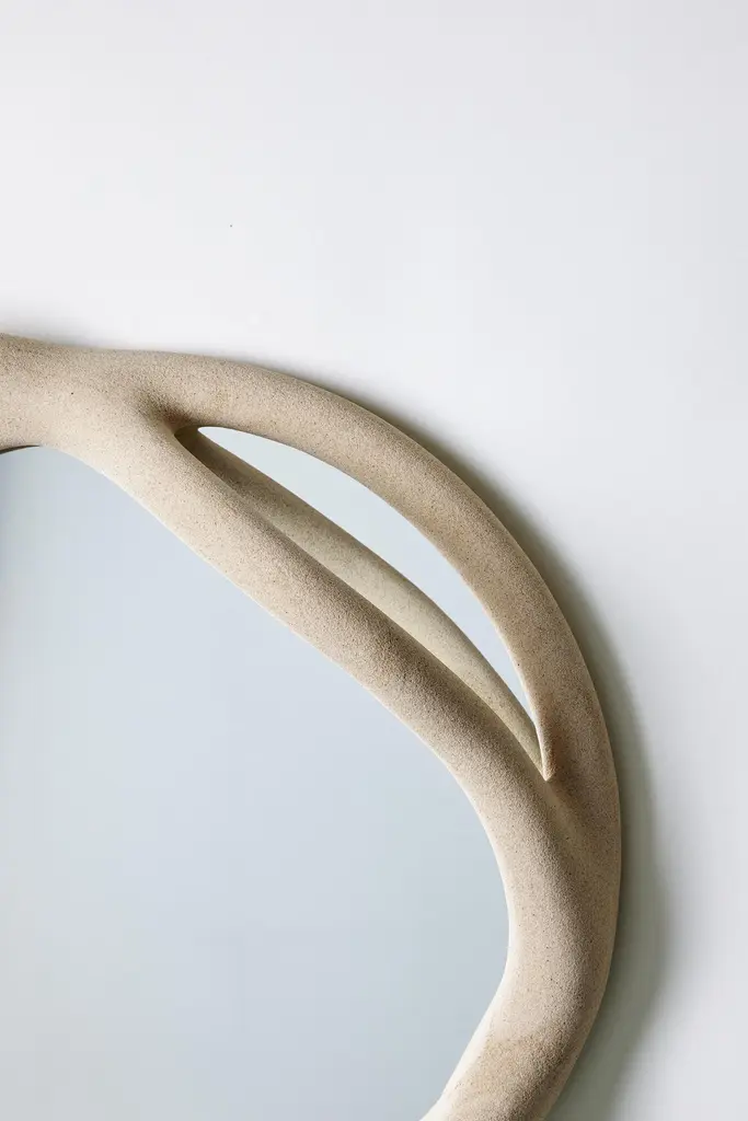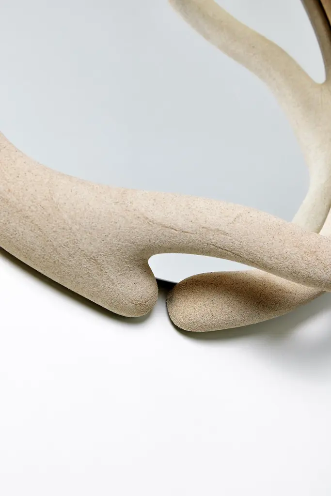 Medium Portal Beige Sand and Nylon Wall Mirror by Hot Wire ExtensionsMaterials: Waste nylon powder, locally sourced beige sand, copper pipe, mirror.Dimensions: W 61 x D 13 x H 60 cm9 kgDifferent dimensions, shapes, and colors upon request.Hot Wire Extensions is a young sustainable design brand, presenting a bold innovative manufacturing process.Exploration is central to our philosophy and the Hot Wire Extensions process is conceived with this in mind. Using waste SLS 3D nylon powder, a material that is currently not recycled, and inspired by the way a vine grows around a tree, we reuse the material to create organic bone-like structures built around a wire.We design and develop a diverse range of products, furniture and installations as well as bespoke commissions all characterised by our dedication to the mindful exploration of new material landscapes.