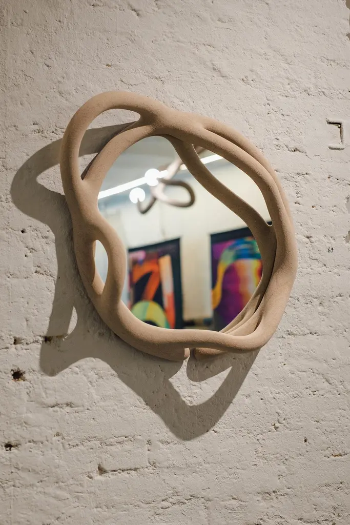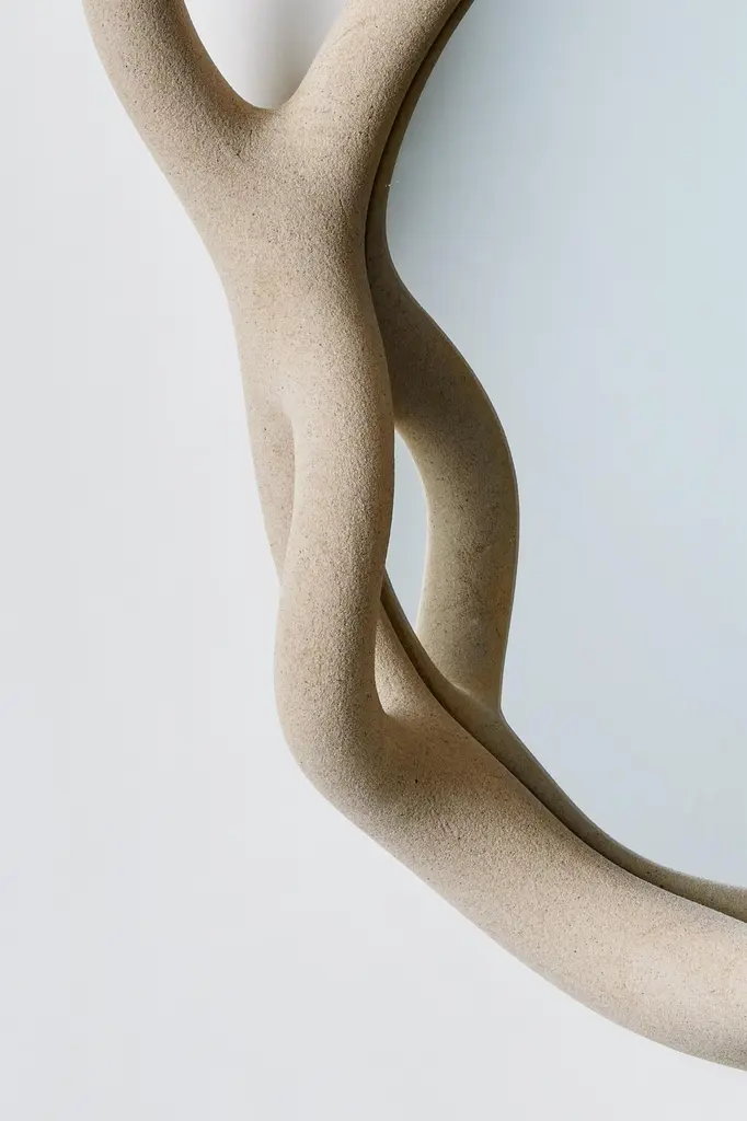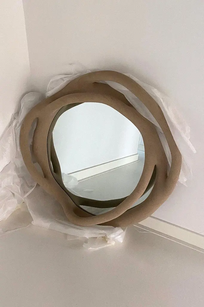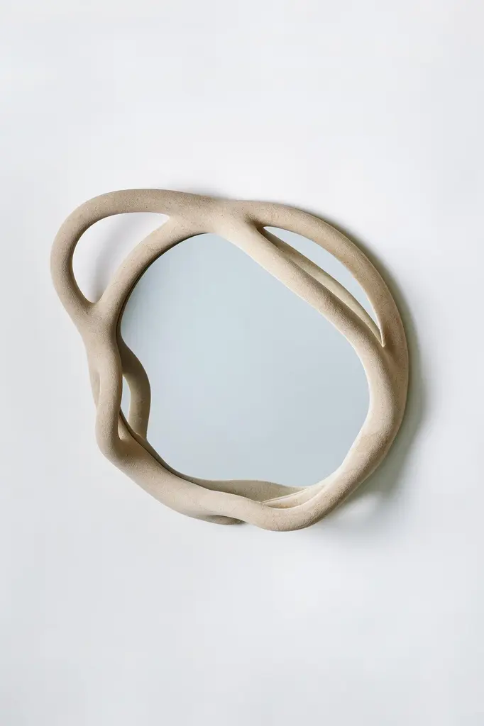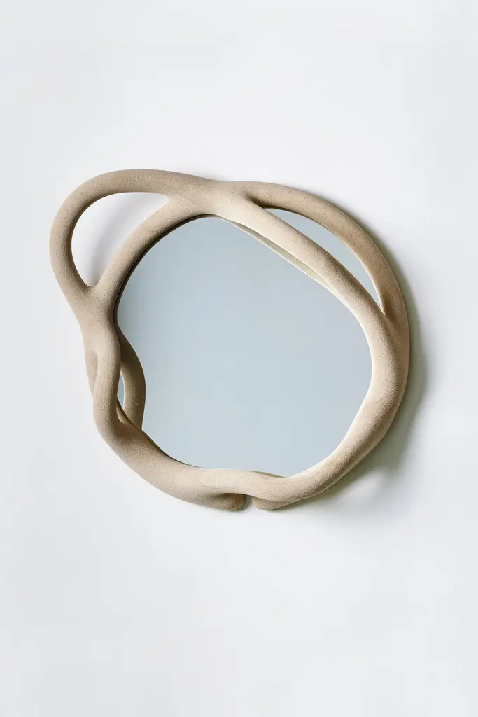Medium Portal Beige Sand and Nylon Wall Mirror by Hot Wire ExtensionsMaterials: Waste nylon powder, locally sourced beige sand, copper pipe, mirror.Dimensions: W 61 x D 13 x H 60 cm9 kgDifferent dimensions, shapes, and colors upon request.Hot Wire Extensions is a young sustainable design brand, presenting a bold innovative manufacturing process.Exploration is central to our philosophy and the Hot Wire Extensions process is conceived with this in mind. Using waste SLS 3D nylon powder, a material that is currently not recycled, and inspired by the way a vine grows around a tree, we reuse the material to create organic bone-like structures built around a wire.We design and develop a diverse range of products, furniture and installations as well as bespoke commissions all characterised by our dedication to the mindful exploration of new material landscapes.