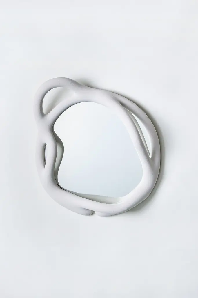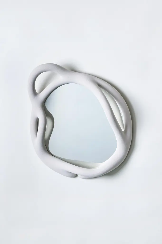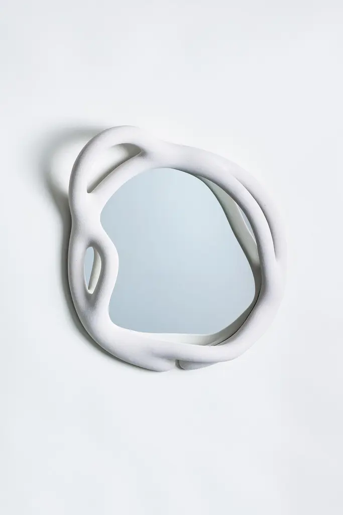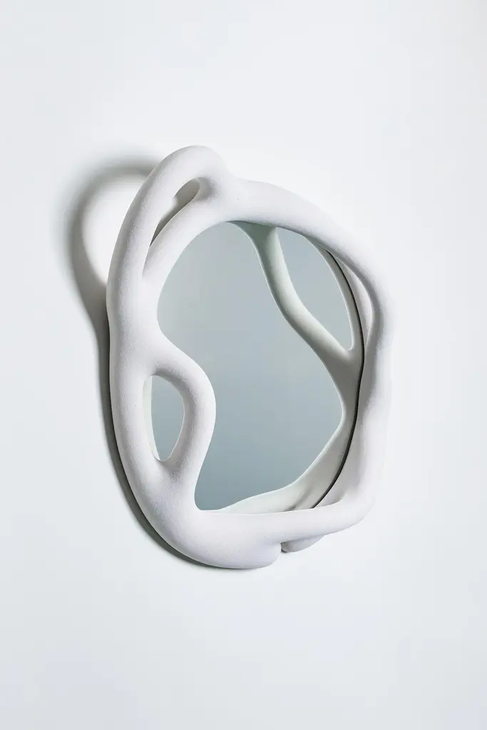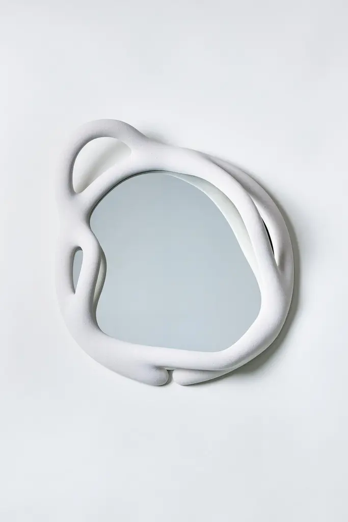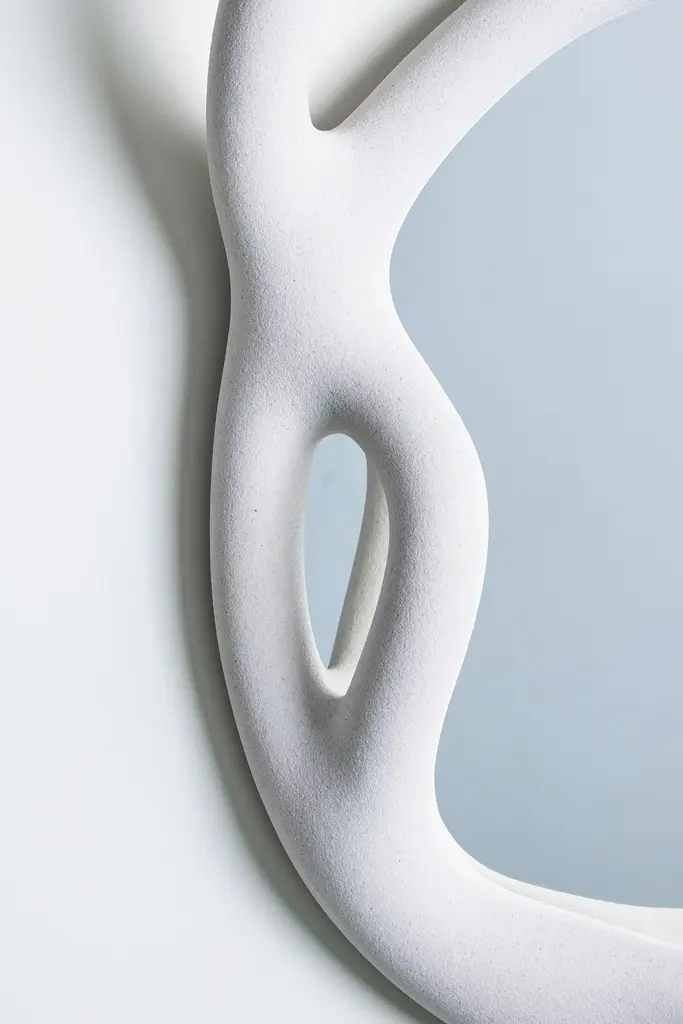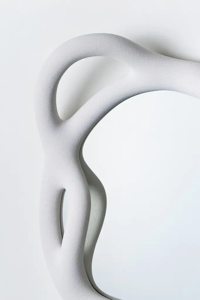 Medium Portal White Marble Sand and Nylon Wall Mirror by Hot Wire ExtensionsMaterials: Waste nylon powder, locally sourced natural white marble sand, copper pipe, mirror.Dimensions: D 13 x W 61 x H 60 cm 9 kgDifferent dimensions, shapes, and colors upon request.Hot Wire Extensions is a young sustainable design brand, presenting a bold innovative manufacturing process.Exploration is central to our philosophy and the Hot Wire Extensions process is conceived with this in mind. Using waste SLS 3D nylon powder, a material that is currently not recycled, and inspired by the way a vine grows around a tree, we reuse the material to create organic bone-like structures built around a wire.We design and develop a diverse range of products, furniture and installations as well as bespoke commissions all characterised by our dedication to the mindful exploration of new material landscapes.