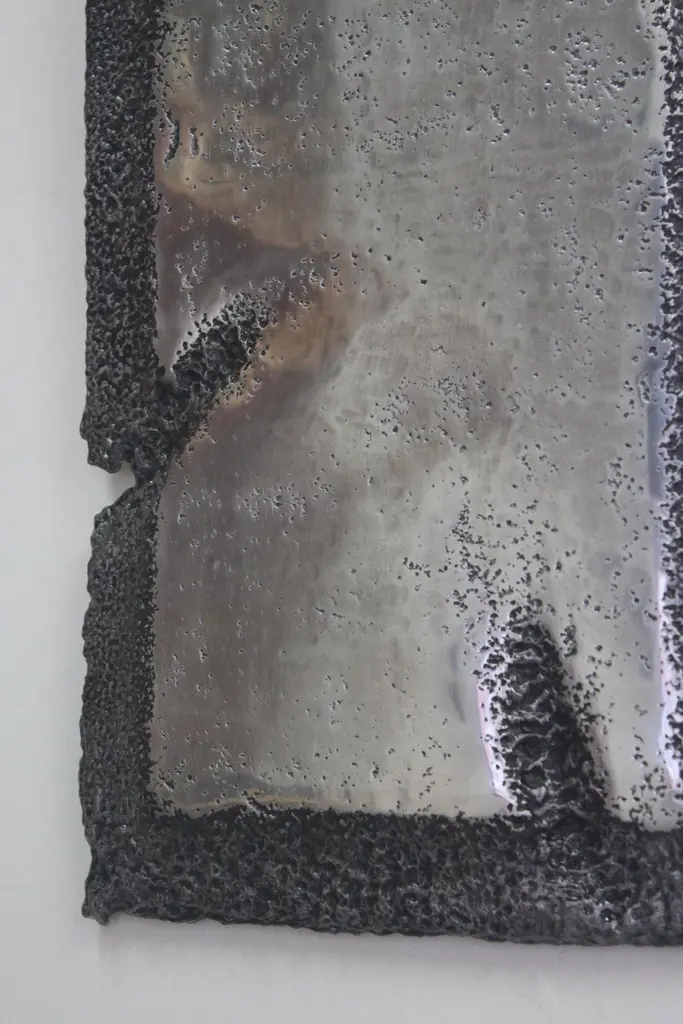 Medium Rectangle Mirror by Saturday Yard WorkDimensions: W 40 x D 30 x H 2.5 cmMaterials: Aluminium.Finish: Semi-reflective polished face / blackened texture. SATURDAY YARD WORK by Nathan Martin is a Kaurna/Adelaide based practice that aims to find a medium between sculpture, craft, and functional objects by delving into material experimentation and processes. Embracing unorthodox production methods, Nathan seeks to uncover unexpected visual and sensory outcomes manifested in form and texture. Through the crafting of unique pieces, his experimental and process-driven design ethos celebrates the unconventional, embracing the imperfect and the intricacies of handmade objects.