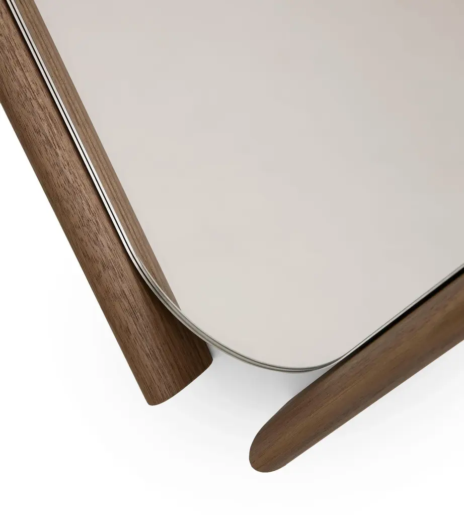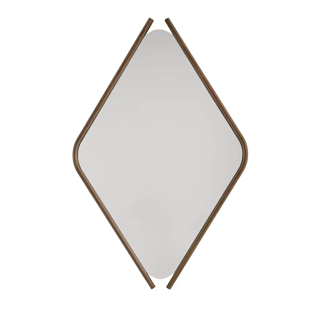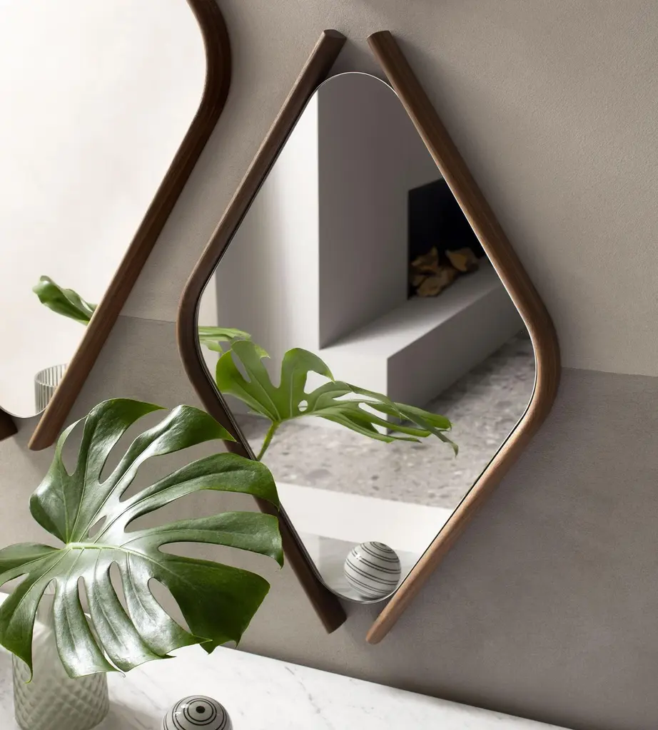 Medium Walnut Wood Eye Mirrors by Morica Design Dimensions: D 4 x W 104 x H 68 cm Materials: Mirror, Canaletto walnut. Mirror with a frame in solid wood with “herringbone” processing. Shaped mirror with silver mirror. The spark of an idea began with three brothers, Moreno, Riccardo, and Carlo, and the desire to provide genuine Made in Italy design furniture, delivered to customer homes directly from the factory.