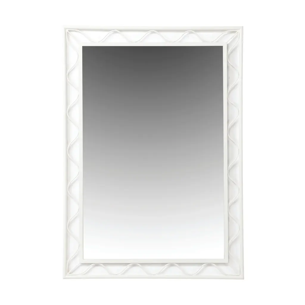 Designed for Wildwood by Meg Braff Designs, this is a white open framed mirror with wavy details. Dust with a dry cloth.