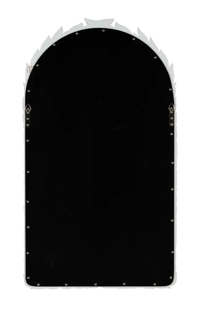 The Megan Molten x Cooper Classics Mitzi Wall Mirror boasts a sleek and modern look with its painted white finish. Crafted from durable PU material, this mirror is both stylish and long-lasting. Transform any room with this elegant addition.