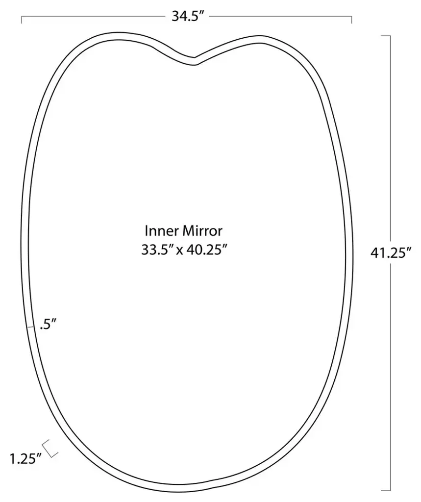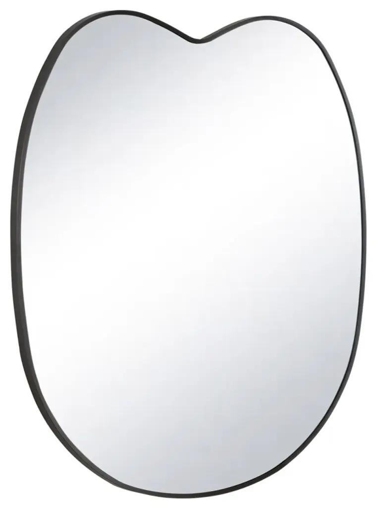 The Mela Metal Mirror: a captivating blend of organic shapes and sleek metal craftsmanship. Its artful design boasts a unique silhouette that adds a touch of contemporary flair to any space. Perfect for living rooms, bedrooms, or entryways, this mirror promises to be a striking focal point, elevating your home decor with its distinct charm. Dimensions 34.5W x 41.25H x 1.25D