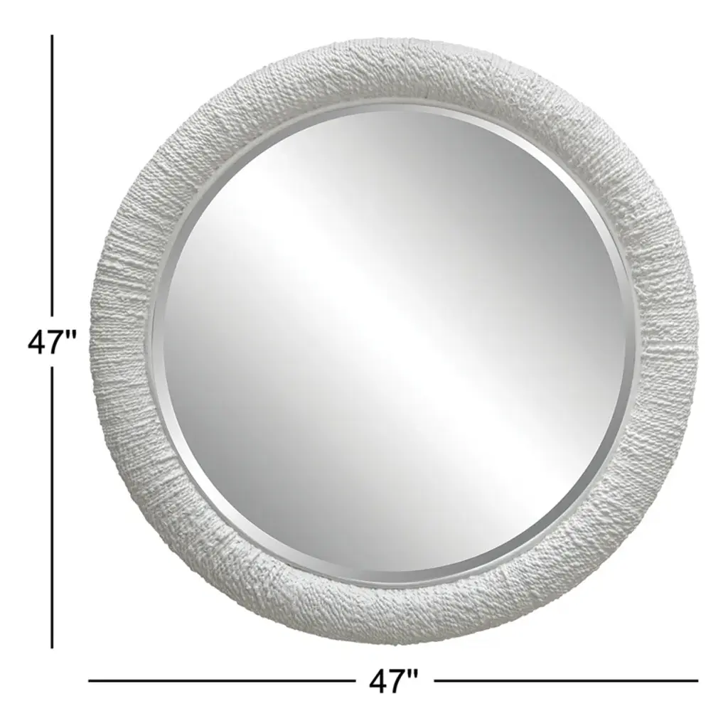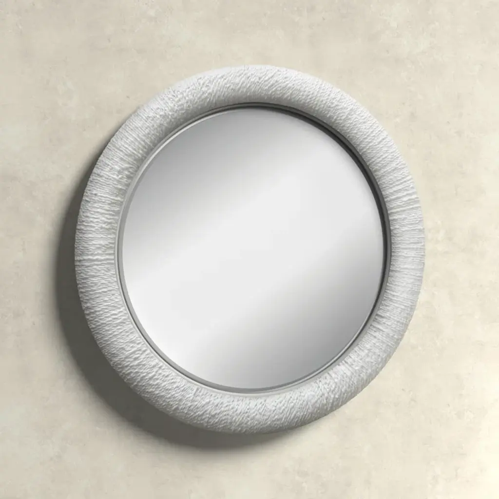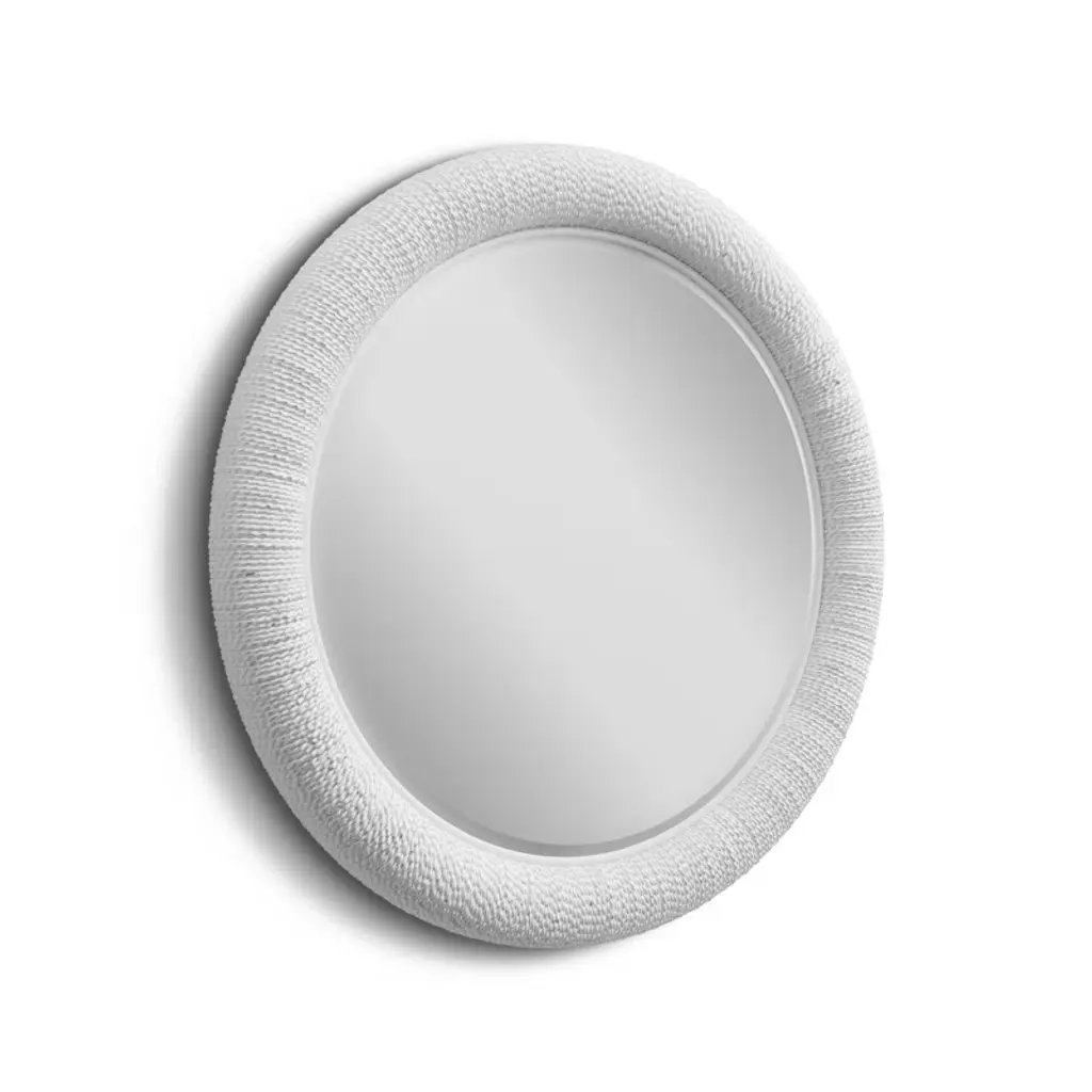 A casual yet sophisticated nod to classic coastal style, this mirror features a rounded frame made of natural woven banana plant accented with a rattan inner edge all finished in matte white. Mirror has a generous 1.5 bevel.