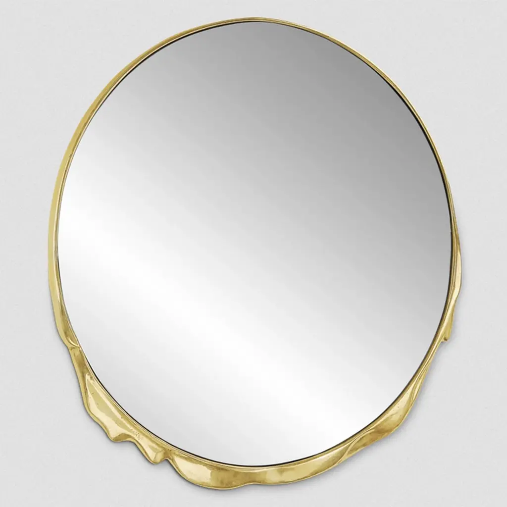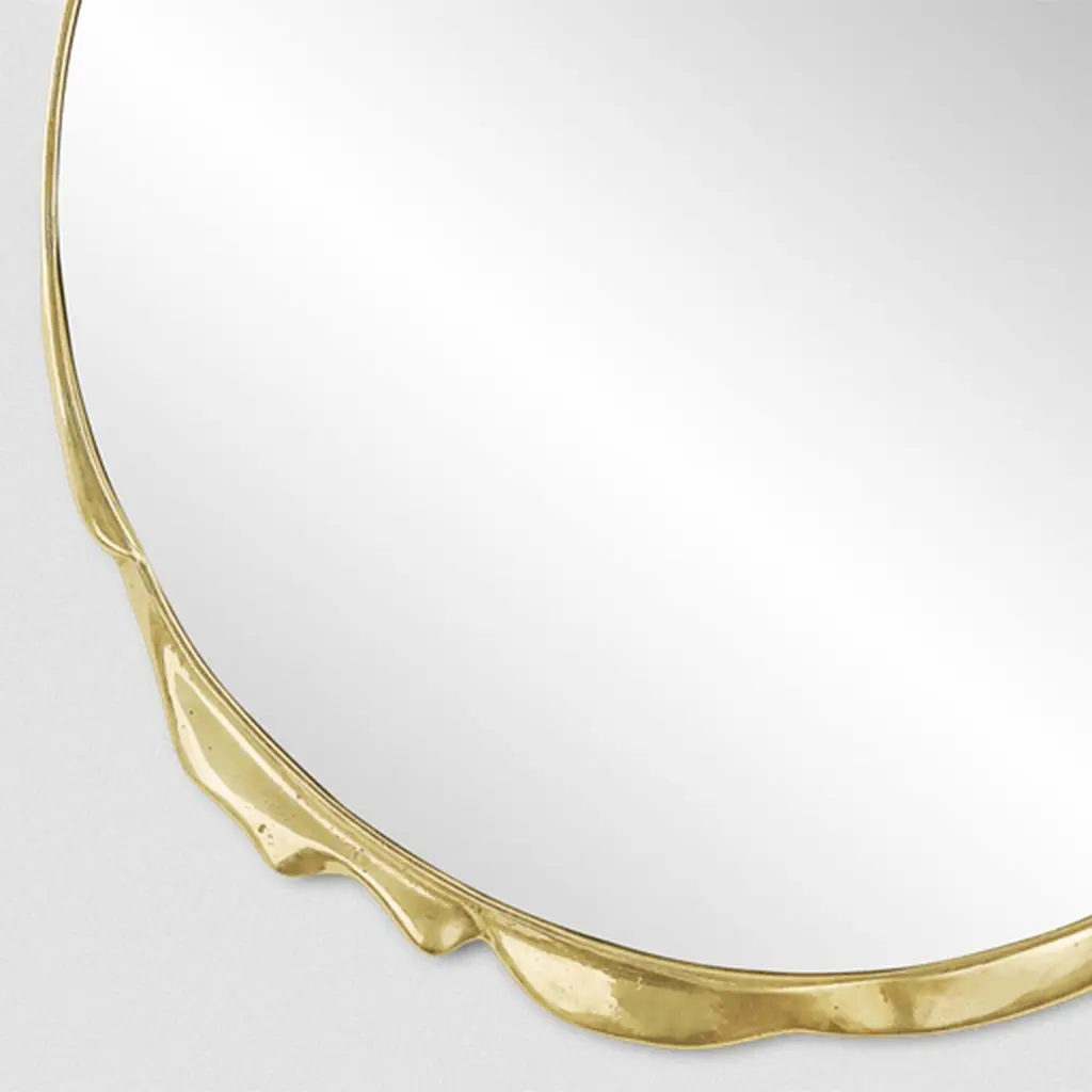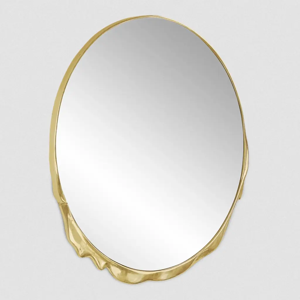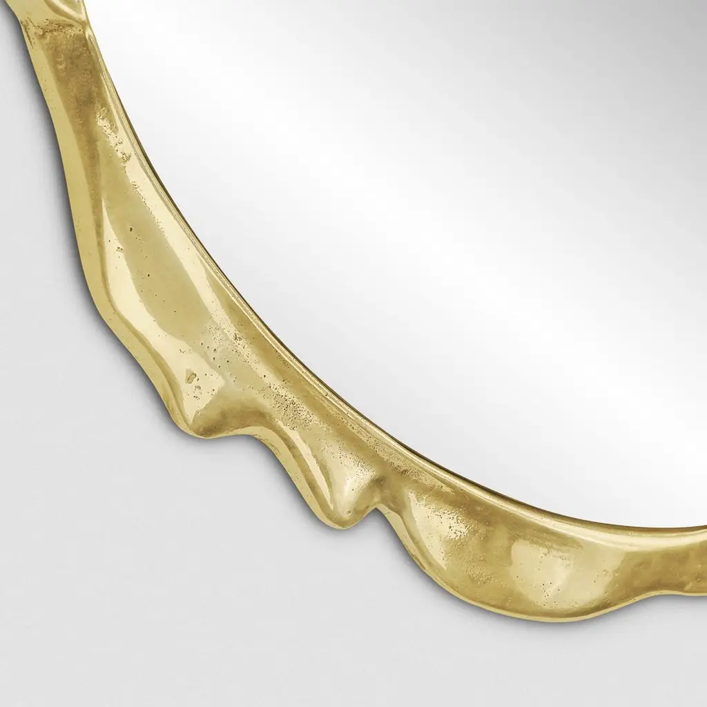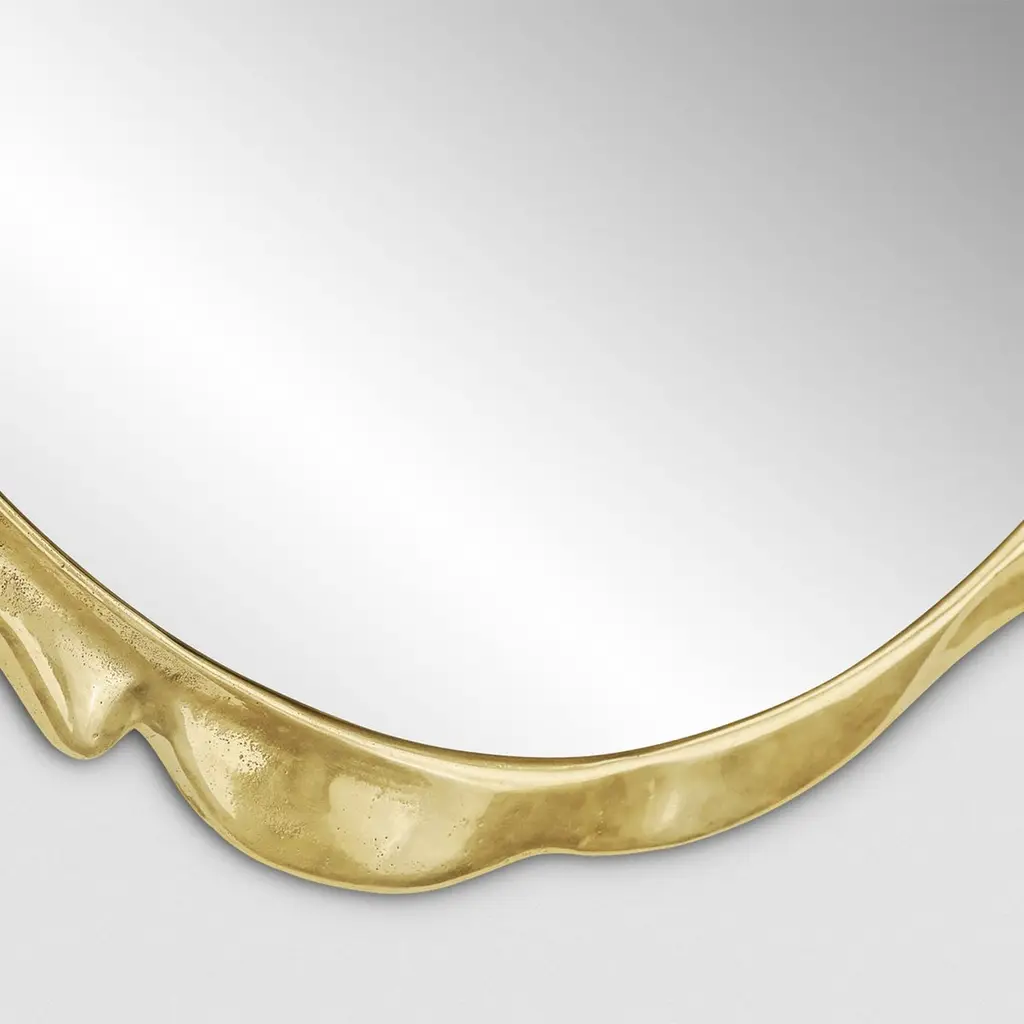 Mirror Melted gold with casted aluminum frame in raw gold finish, with clear mirror glass.