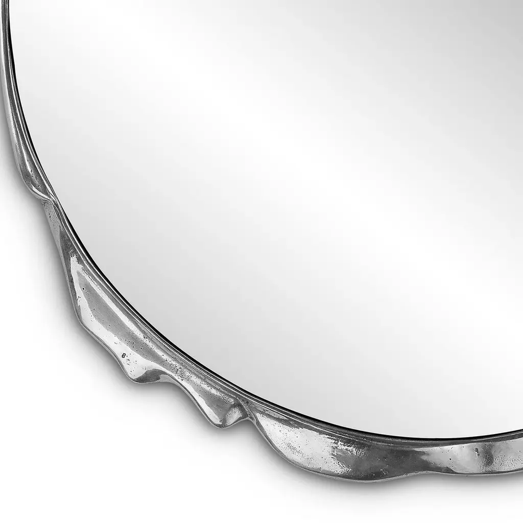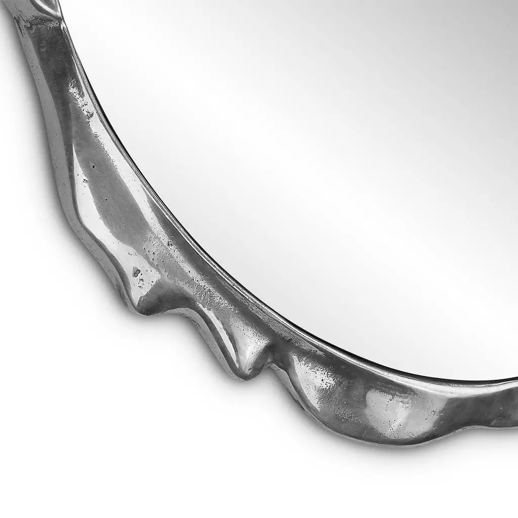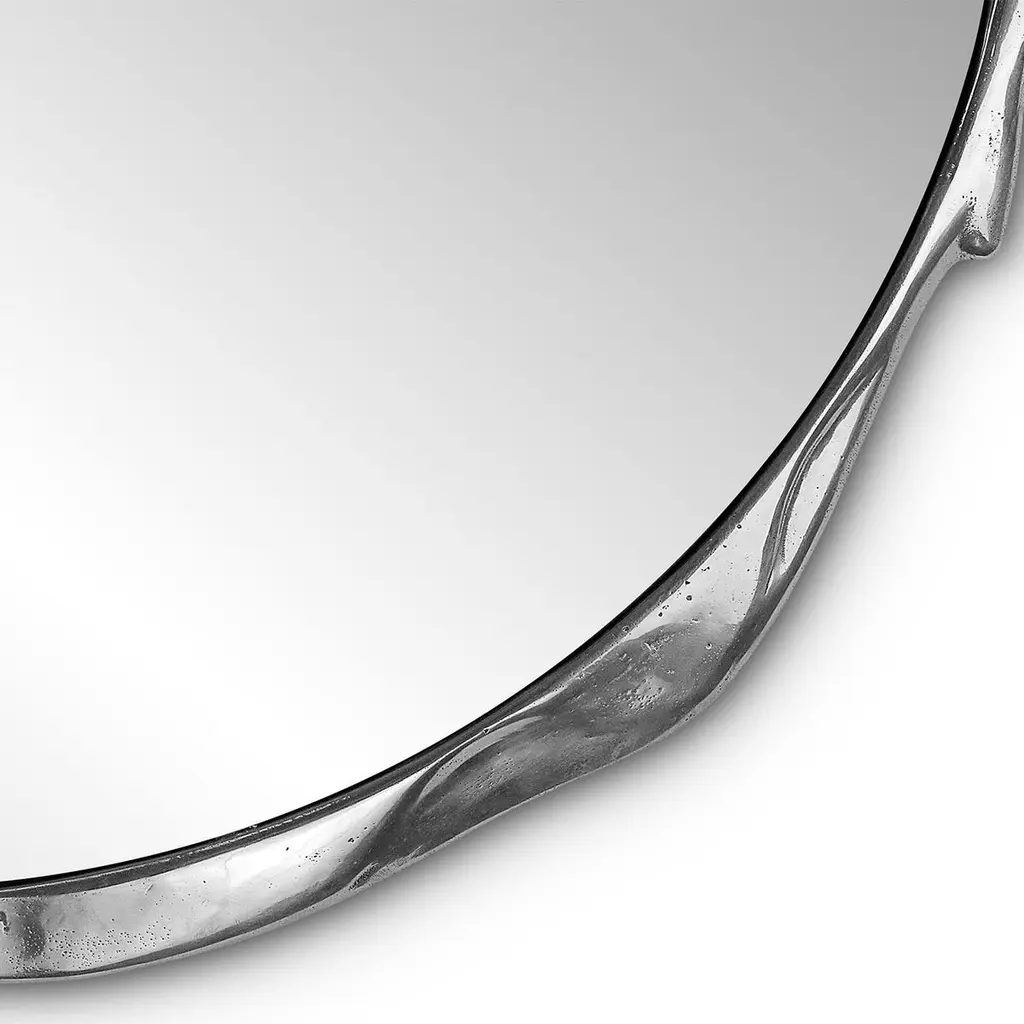 Mirror melted with casted aluminum frame in raw and polished finish, with clear mirror glass.