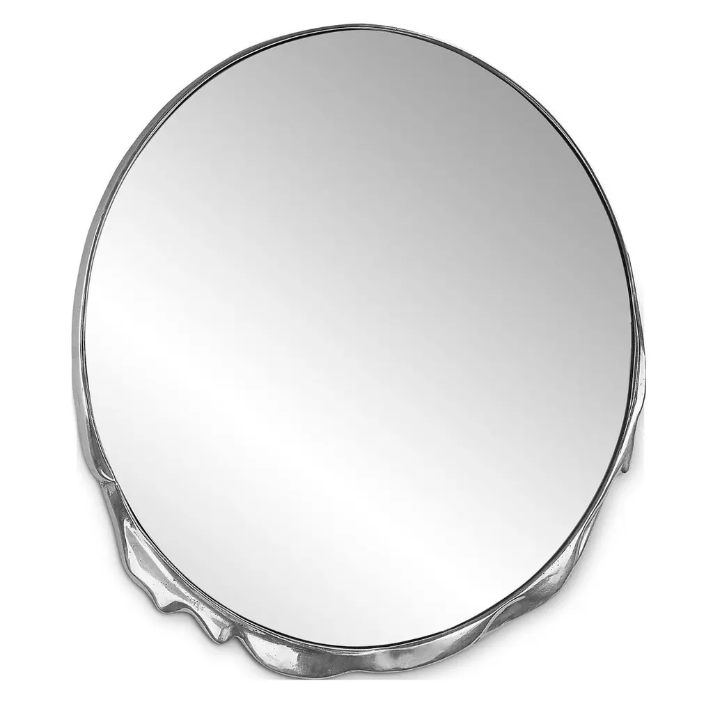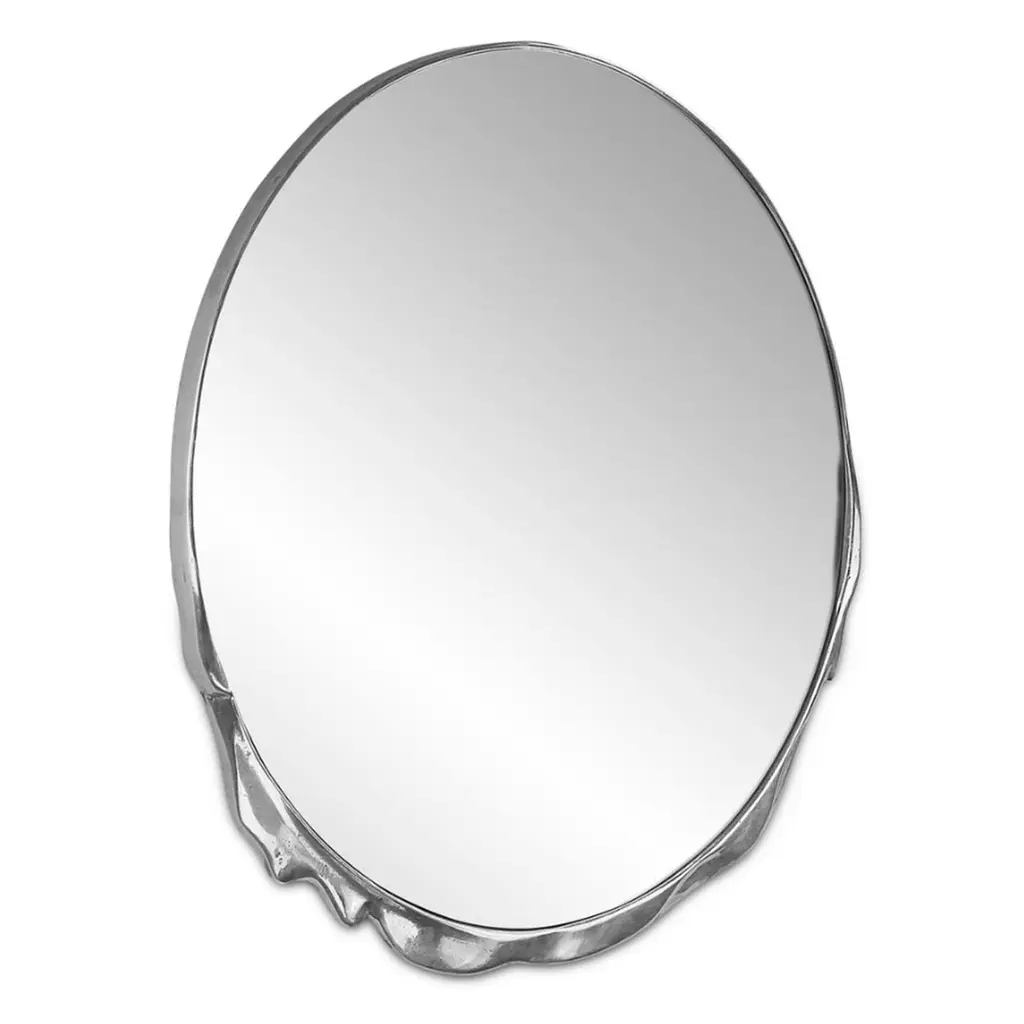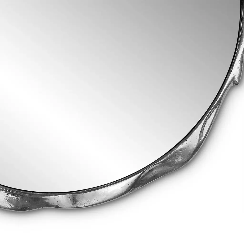 Mirror melted with casted aluminum frame in raw and polished finish, with clear mirror glass.
