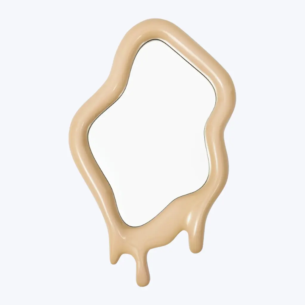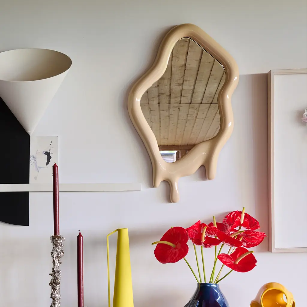 Adorn your wall with Polspotten’s statement-making Melting Mirror. Designed to challenge society’s obsession with perfection, the Melting Mirror’s fluid form celebrates individuality, encouraging us to embrace our unique and quirky selves. Available in beautiful beige and bold pink hues, this playful piece is bursting with personality. A joyful and irreverent touch to any room. Choose between medium, large, and extra-large sizes.