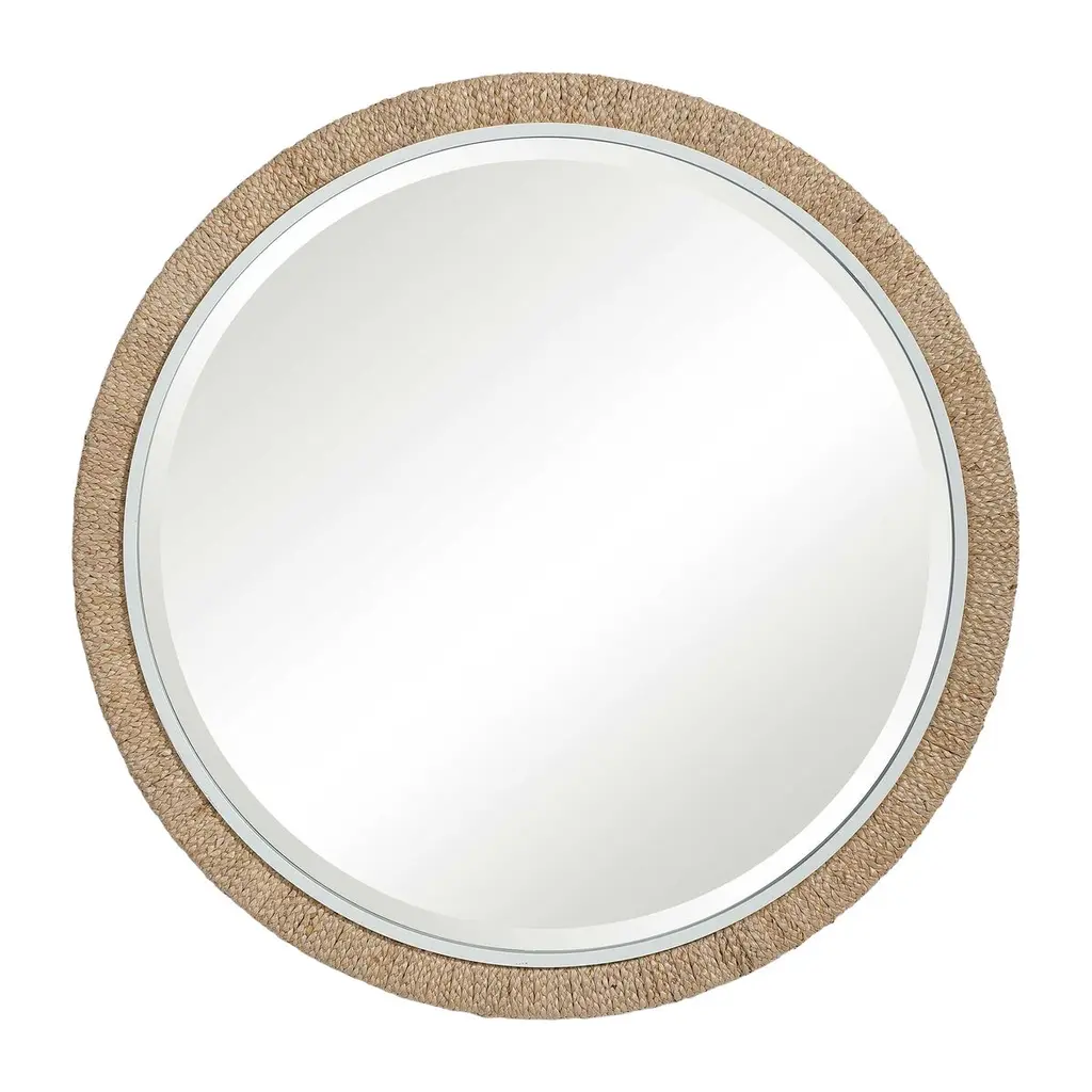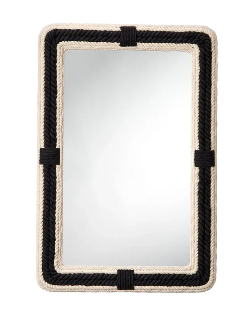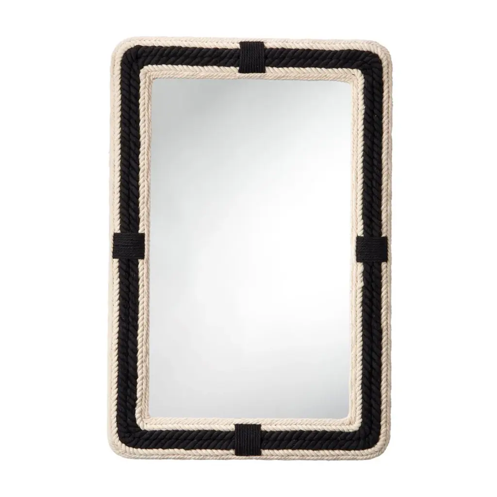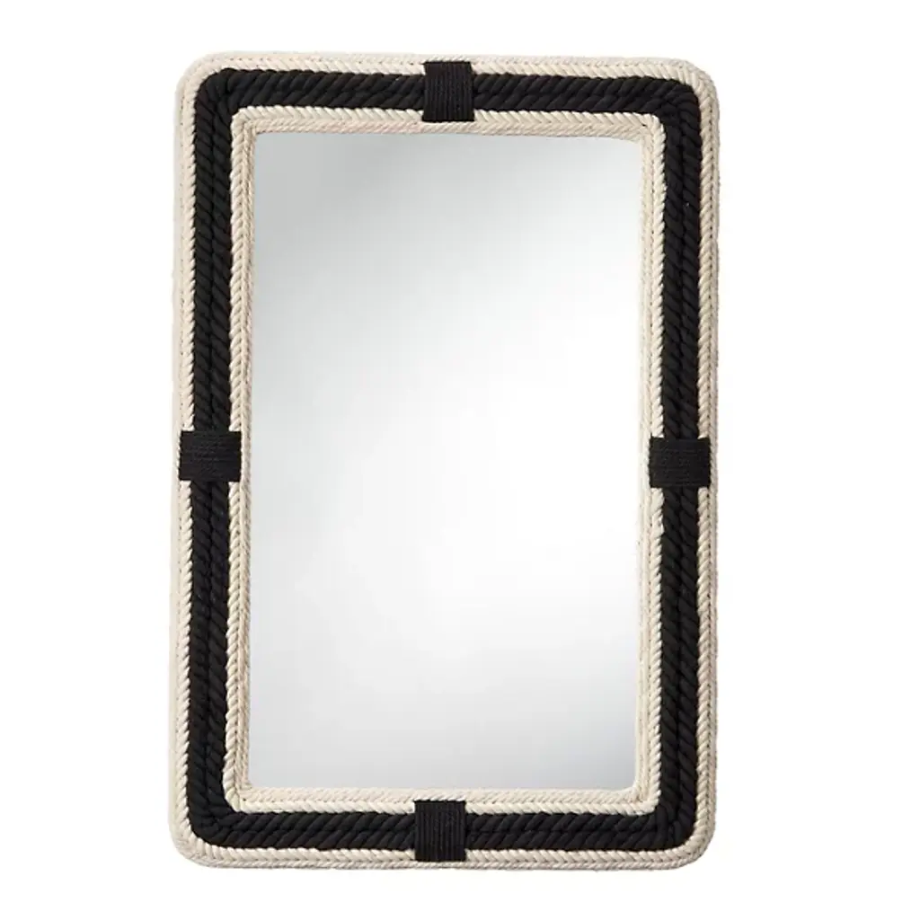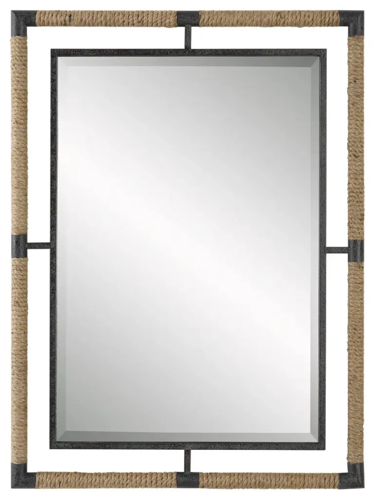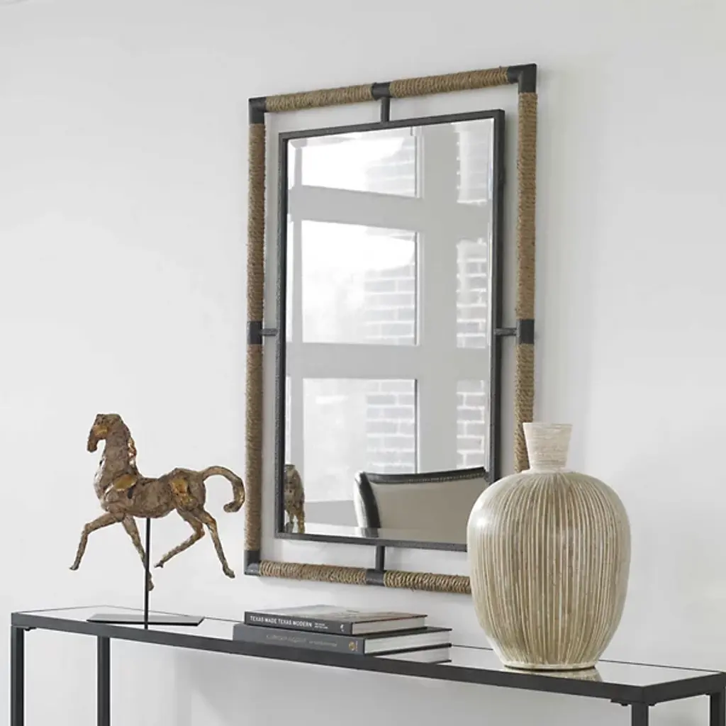 The Melville Rectangular Wall Mirror from Uttermost makes an architectural statement through its mixed-material construction. The natural rope wraps strategically around the forged iron frame, creating intentional pauses in the industrial framework. The textured surface treatment adds depth to the metal, while the carefully placed beveled edge enhances spatial perception. This mirror, designed by Grace Feyock, adapts to both horizontal and vertical orientations, allowing for creative placement options. The combination of raw iron and woven rope brings an authentic maritime influence to interior spaces.