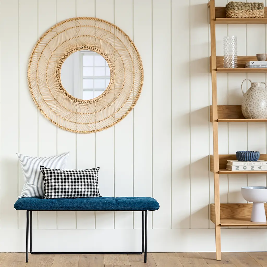 You’ve got to see it to be-weave it. You know how you can hear the ocean when you hold a seashell to your ear? The Meron mirror is like that, but for your eyes. Made from natural coco midrib, the round Meron brings coastal cool to your walls. All of a sudden you’re wearing head-to-toe linen and can feel the sun on your SPF’d face.
