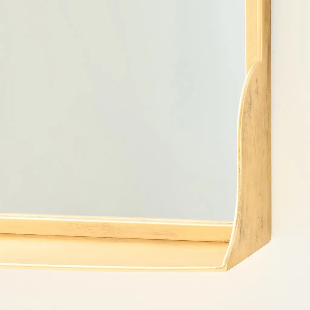 This mirror includes a small shelf to hold anything from a bud vase and candles to jewelry and keepsakes. Functional and stylish, this mirror is a must-have for any home.