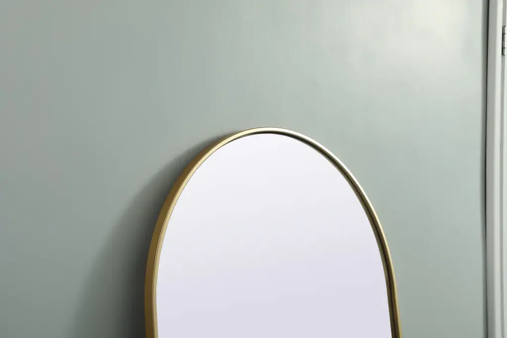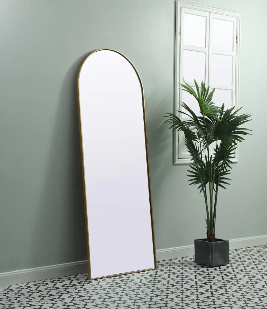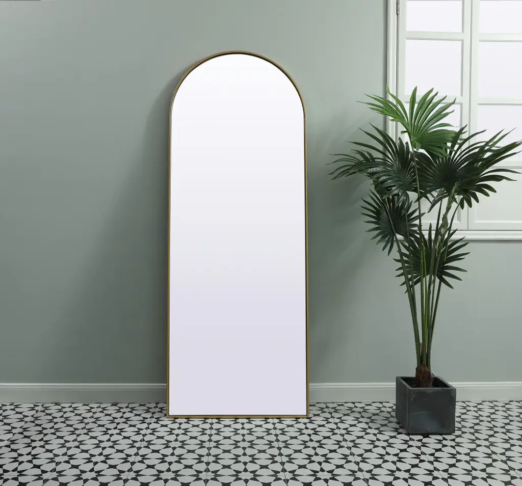 Instantly open up any space in your home with this minimalist wall-mounted mirror. Crafted of metal, this mirror strikes a round silhouette. Its slender, clean-lined frame sports a classic finish, while the glass mirror within features a flat, for a brilliant reflection, letting the light bounce off to expand your space. Designed in an arch shape, this metal-frame mirror showcases in the three available satin finishes in black, brass, or silver. Mount this work of art in any room of your choice for added visual impact.Versatile arched-top full length mirror provides a full body view in two ways: leaned it against the wall or mount it on any secure wall to save space. (mounting hardware is not provided)the mirror comes with a solid MDF board backing and two welded keyhole hanger for easy installationMirror is recessed into the ultra-thin iron sturdy metal frameperfect accent mirror to add visual interest and depth to your bedroom, living room, bathroom, entry way or any room!this mirror can only be installed in a vertical orientationmirror arrives at your home in one piece with no installation requiredglass insert measures 27.22 inch wide X 0.15 inch deep X 73.22 inch high