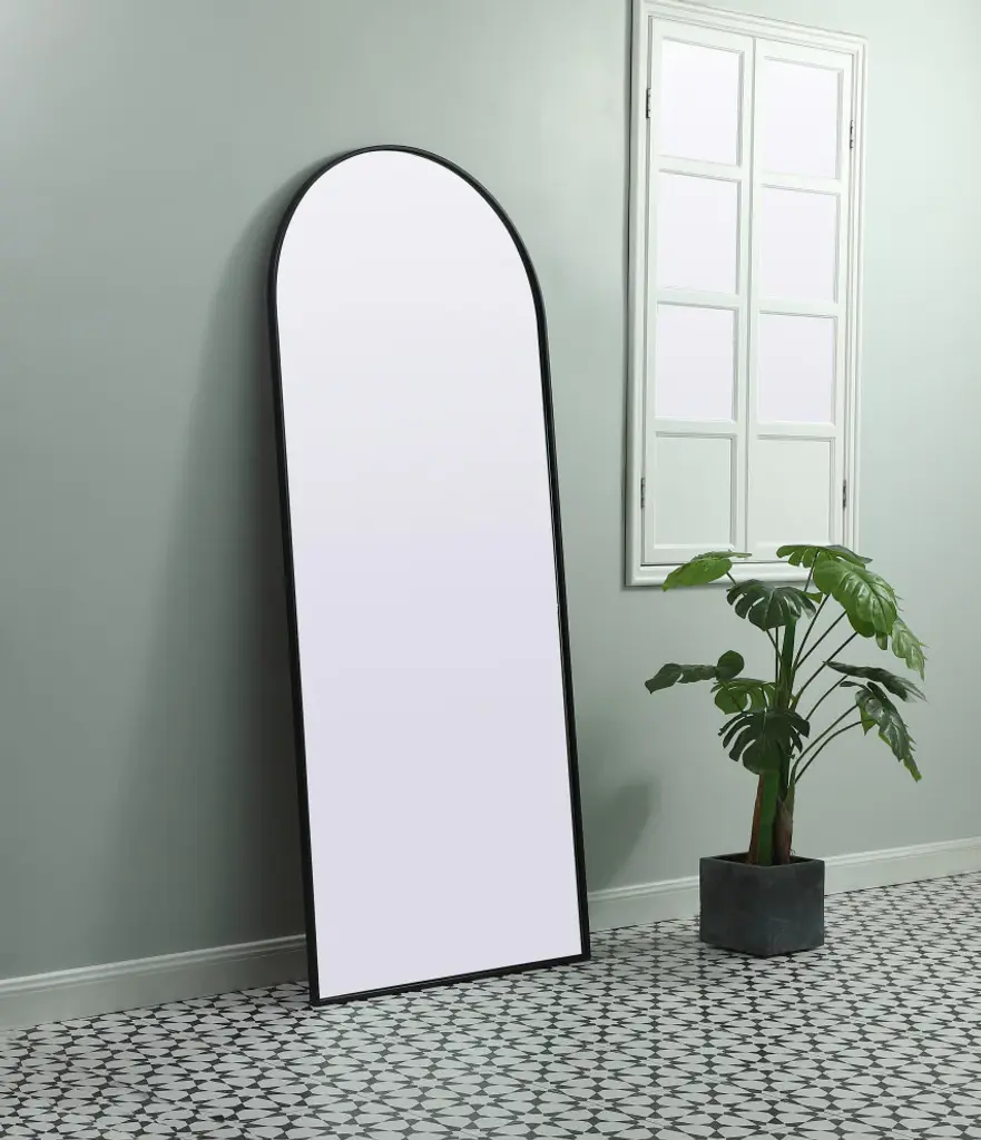 Instantly open up any space in your home with this minimalist wall-mounted mirror. Crafted of metal, this mirror strikes a round silhouette. Its slender, clean-lined frame sports a classic finish, while the glass mirror within features a flat, for a brilliant reflection, letting the light bounce off to expand your space. Designed in an arch shape, this metal-frame mirror showcases in the three available satin finishes in black, brass, or silver. Mount this work of art in any room of your choice for added visual impact.Versatile arched-top full length mirror provides a full body view in two ways: leaned it against the wall or mount it on any secure wall to save space. (mounting hardware is not provided)the mirror comes with a solid MDF board backing and two welded keyhole hanger for easy installationMirror is recessed into the ultra-thin iron sturdy metal frameperfect accent mirror to add visual interest and depth to your bedroom, living room, bathroom, entry way or any room!this mirror can only be installed in a vertical orientationmirror arrives at your home in one piece with no installation requiredglass insert measures 31.22 inch wide X 0.15 inch deep X 75.22 inch high