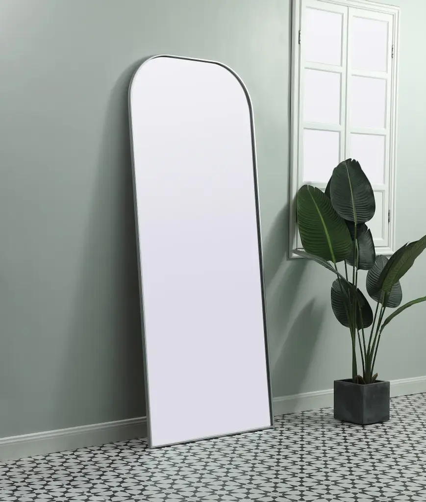 Metal Frame Arch Full Length Mirror 32x76 Inch, Silver