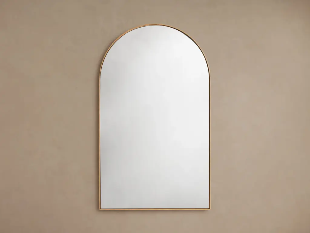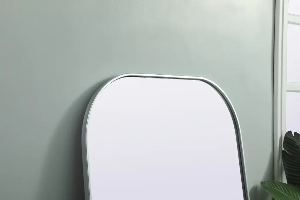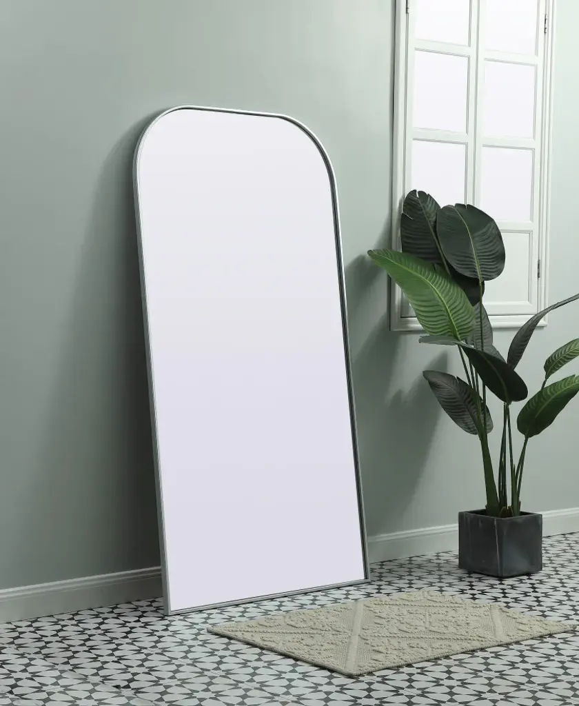 Elongated and modern, its curved profile looks great as a leaning mirror or a hanging mirror by a door. This ultra thin full-length mirror makes a practical addition to any room. Set in an iron frame, this sturdy mirror complements any room. Whether you want to create an illusion of extra space or use it as a functional accent, this mirror will make a big statement over your wall. Comes in three satin finishes in black, brass, or silver.Versatile oblong-top full length mirror provides a full body view in two ways: leaned it against the wall or mount it on any secure wall to save space. (mounting hardware is not provided)the mirror comes with a solid MDF board backing and two welded keyhole hanger for easy installationMirror is recessed into the ultra-thin iron sturdy metal frameperfect accent mirror to add visual interest and depth to your bedroom, living room, bathroom, entry way or any room!this mirror can only be installed in a vertical orientationmirror arrives at your home in one piece with no installation requiredglass insert measures 34.22 inch wide X 0.15 inch deep X 65.22 inch high