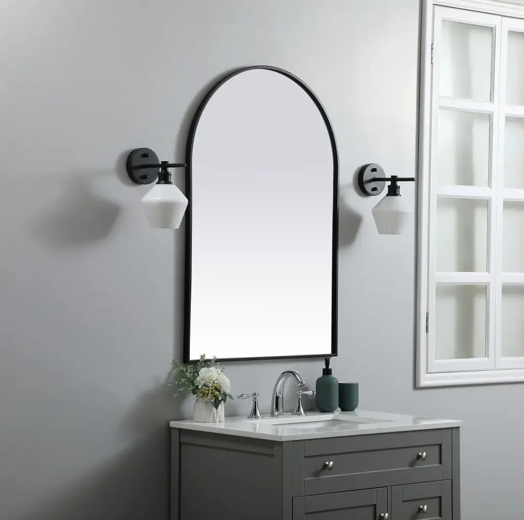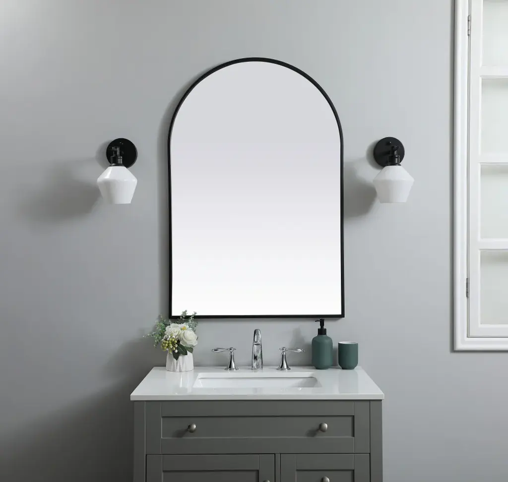 Metal Frame Arch Mirror 27x40 Inch, Black