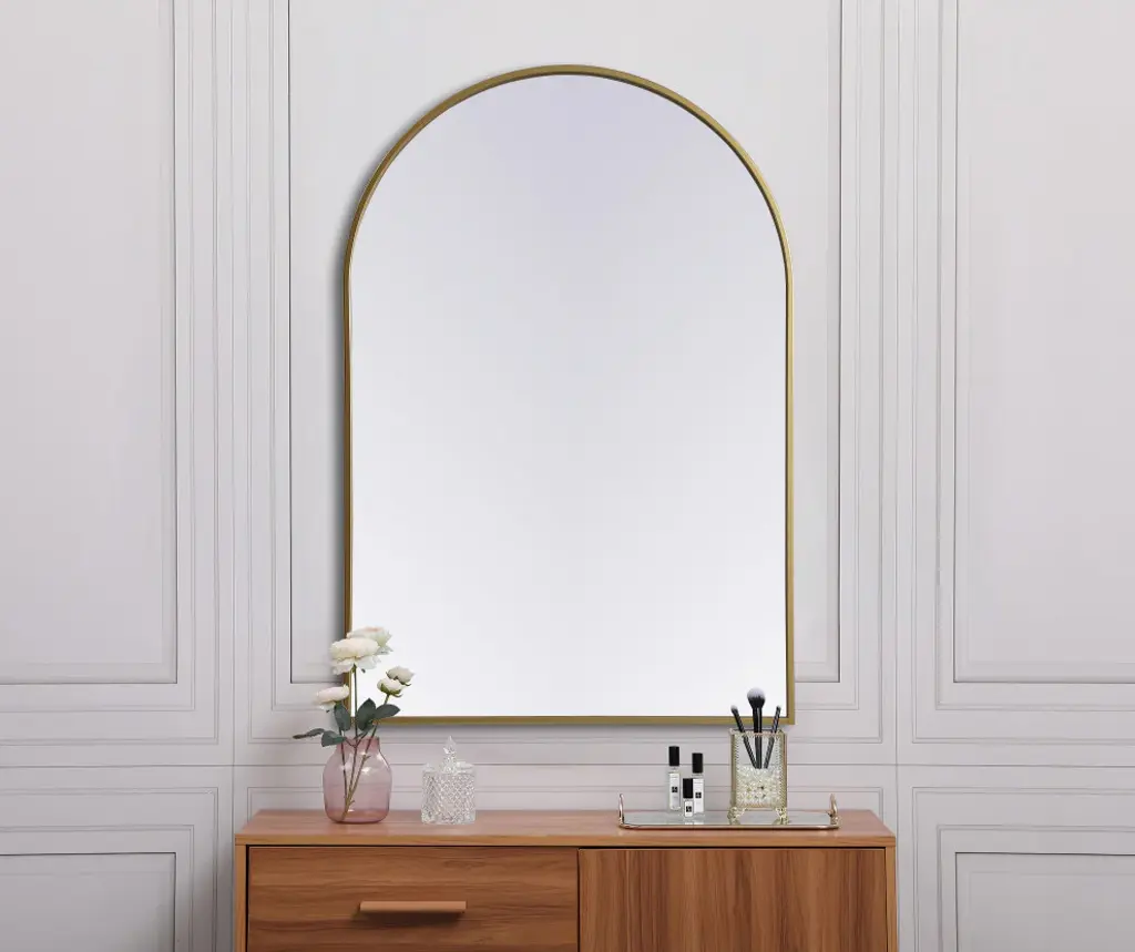 Metal Frame Arch Mirror 27x40 Inch, Brass
