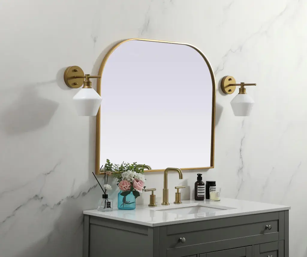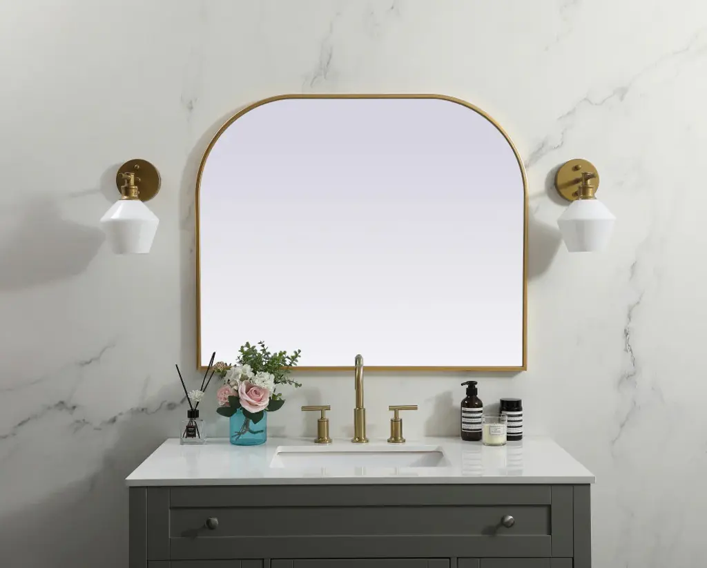 Metal Frame Arch Mirror 36x30 Inch, Brass