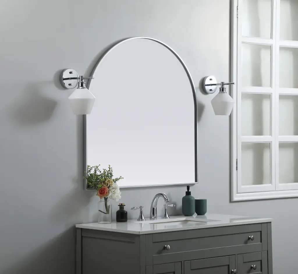 Metal Frame Arch Mirror 36x36 Inch, Silver